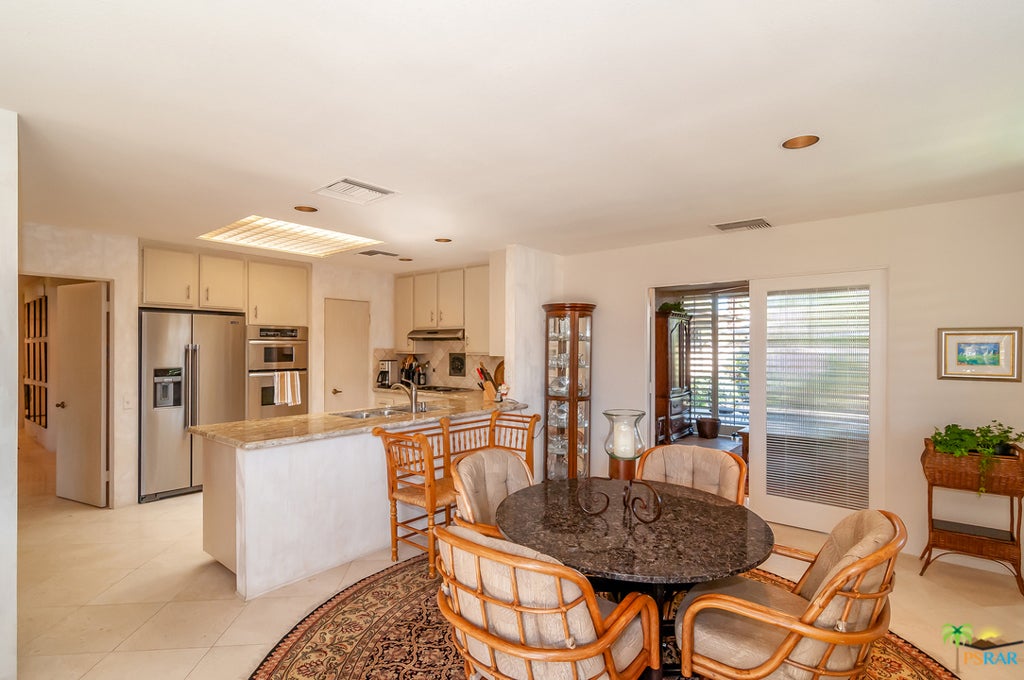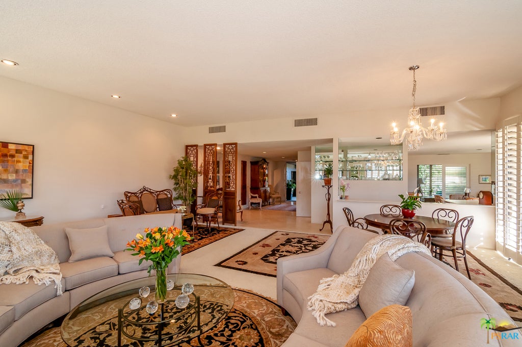 Seasonal rental NOV-APR = $33.5K; JAN-MAR = $6,500 per month; NOV, DEC & APR = $5.5K; MAY = $5K; JUN-OCT = $3.5K; Highly desired Shaughnessy model featuring 2 bd 3 ba plus den. Located in this prestigious guard gated golf course/country club on a peaceful tranquil cul-de-sac and greenbelt overlooking a lake. Relax and unwind while you enjoy panoramic views of the lake and western mountains. The third bedroom has been opened with the morning room adjoining the kitchen to create a family room for casual relaxation and dining. The entry and family room feature Travertine tiles and the kitchen is upgraded to include granite counter-tops, stainless steel appliances, double ovens and a warming oven. Optional Social Membership, golf opportunities at guest rates and optional HOA Fitness Center membership available.