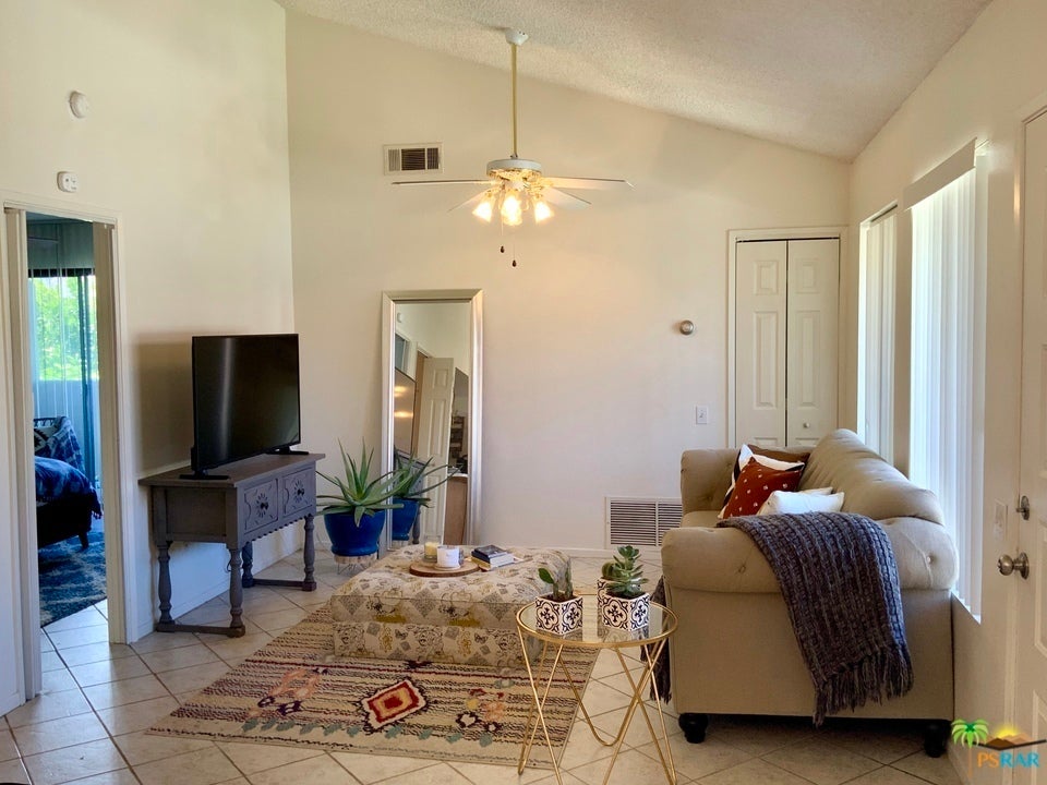 Location, Location, Location! Close to downtown Palm Springs, Spa Casino, shopping, dining and much more! This upper level end unit 1Bedroom/1Bath condo is located within the popular gated community of Casa Verde which features low HOA's, multiple pools, spas, tennis courts, executive putting green and well-maintained grounds. This condo would be perfect as a full-time residence, weekend getaway or investment property.