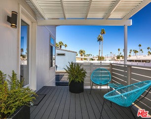 The "Not-so-tiny-home." One of our most popular floor plans, featuring great separation of bedrooms on each side of the house. Flooded with light from numerous windows throughout, plus 9' ceilings. The open floor plan features sliding doors out to your outdoor deck. Spacious outdoor area, will include deck, perimeter fencing, and carport. The Palm Canyon Mobile Club is Palm Springs' latest urban renewal project. The new owners will enjoy the remodeled club house, pool, gym, hot tub, bbq areas, dance hall, plus two dog parks, one of the most unique communities in Palm Springs. Space rent: $682.50/month Pictures of model home for this unit, not the actual home. Actual home currently under construction. Buyer to verify square footage.