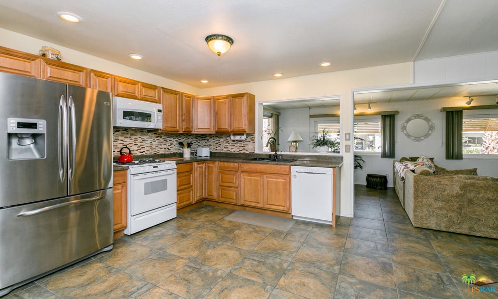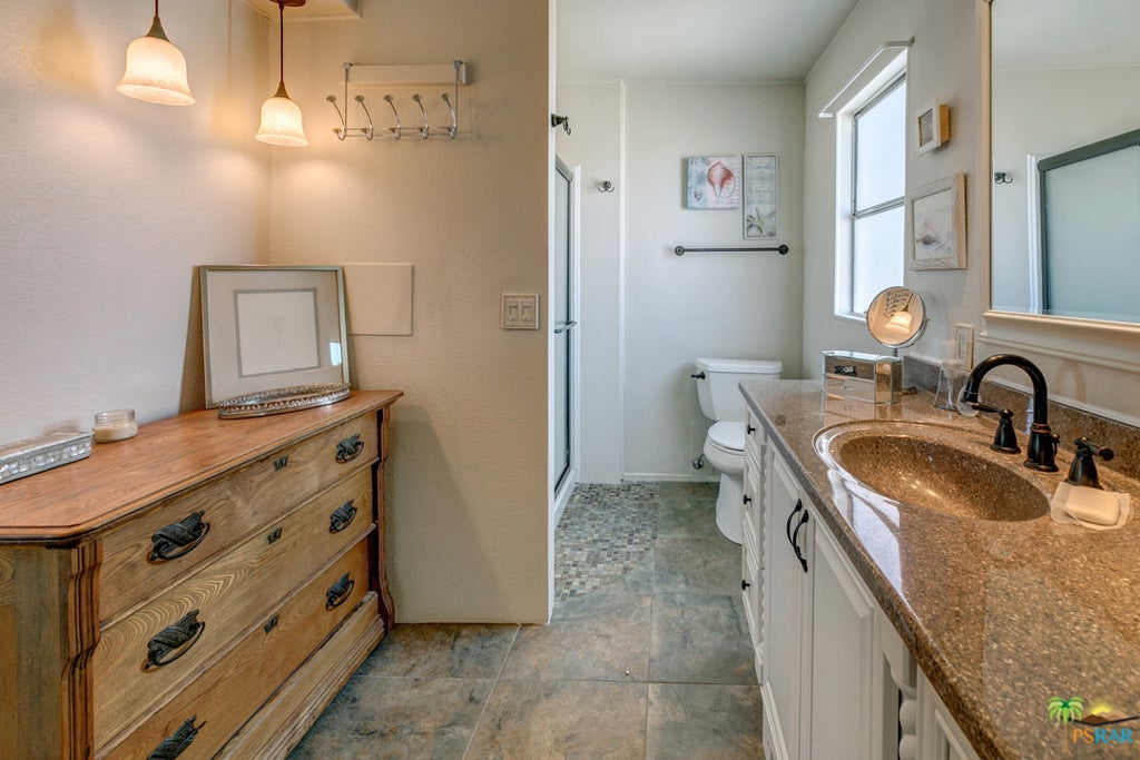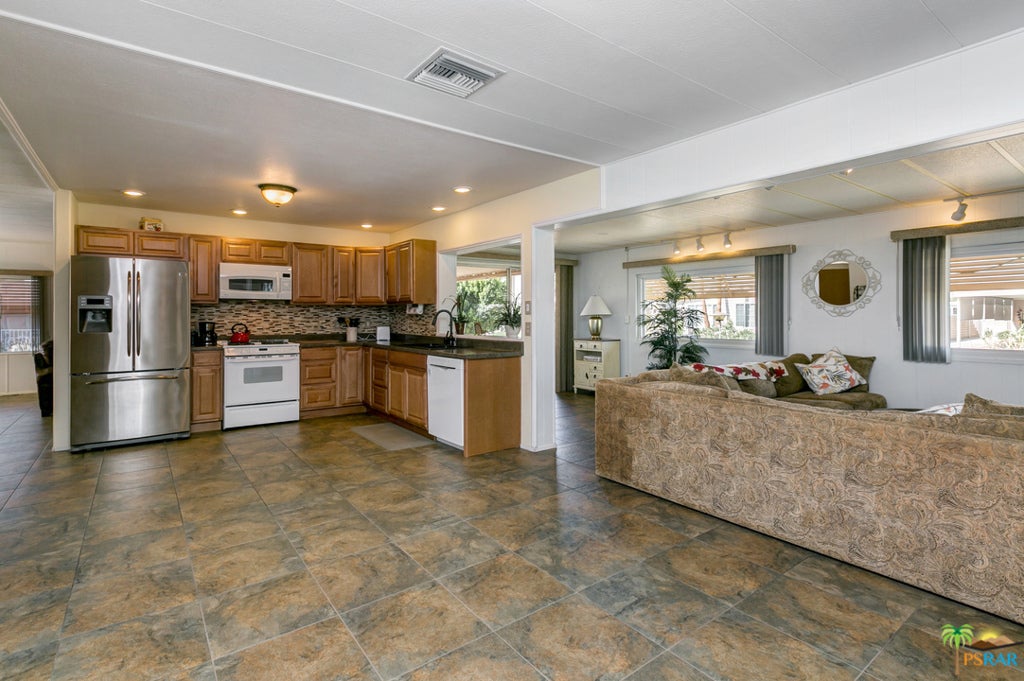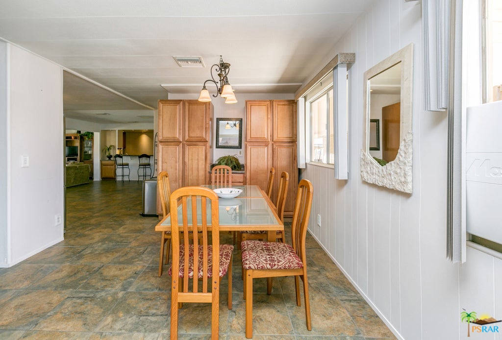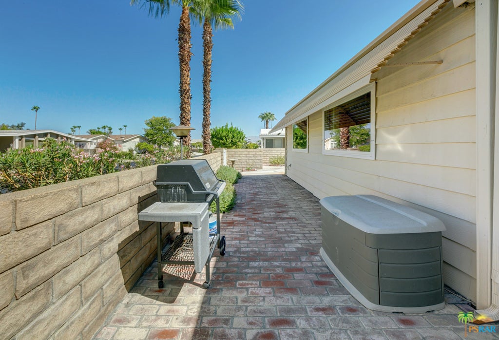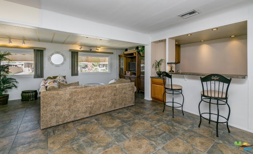 This beautiful home on a large corner lot is fully furnished with fantastic panoramic mountain and sunset views. An open floor layout that includes 2 bedrooms and 2 baths, a huge open living/dining area, a wet bar, travertine flooring. The front patio is perfect for entertaining. There are 3 swimming pools and tennis courts!
