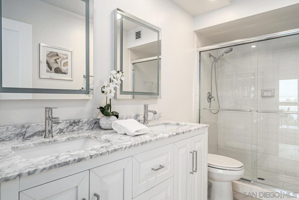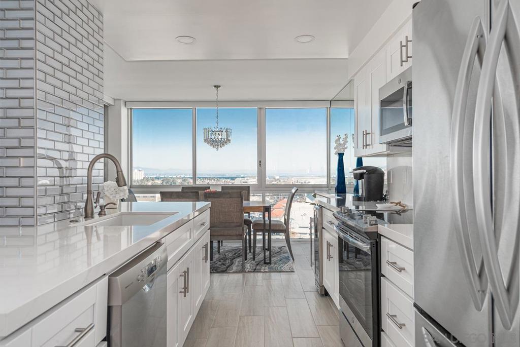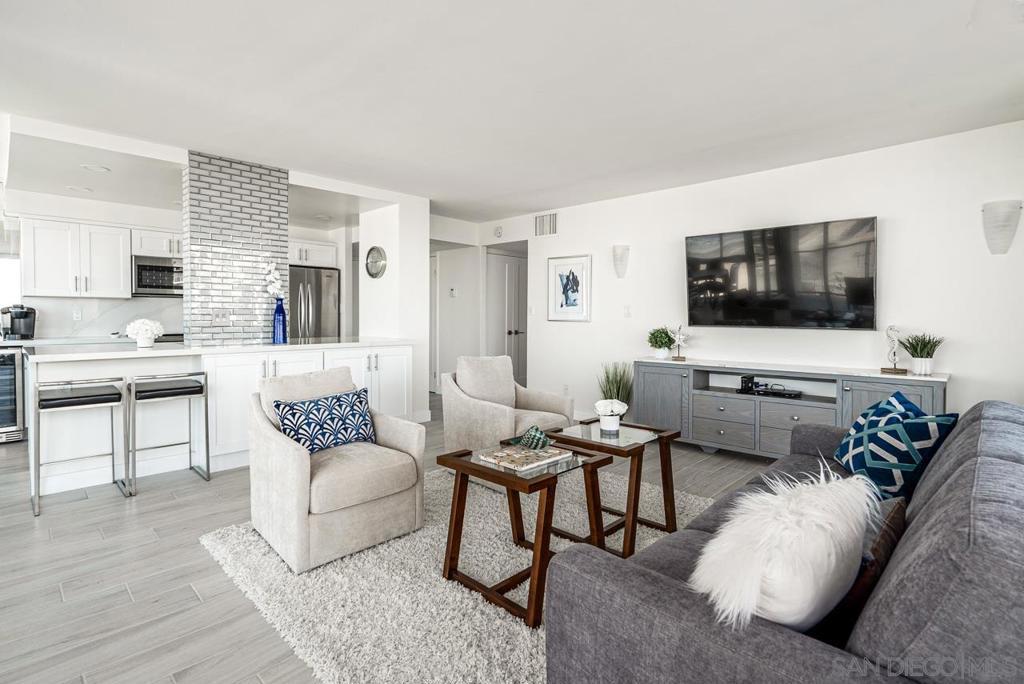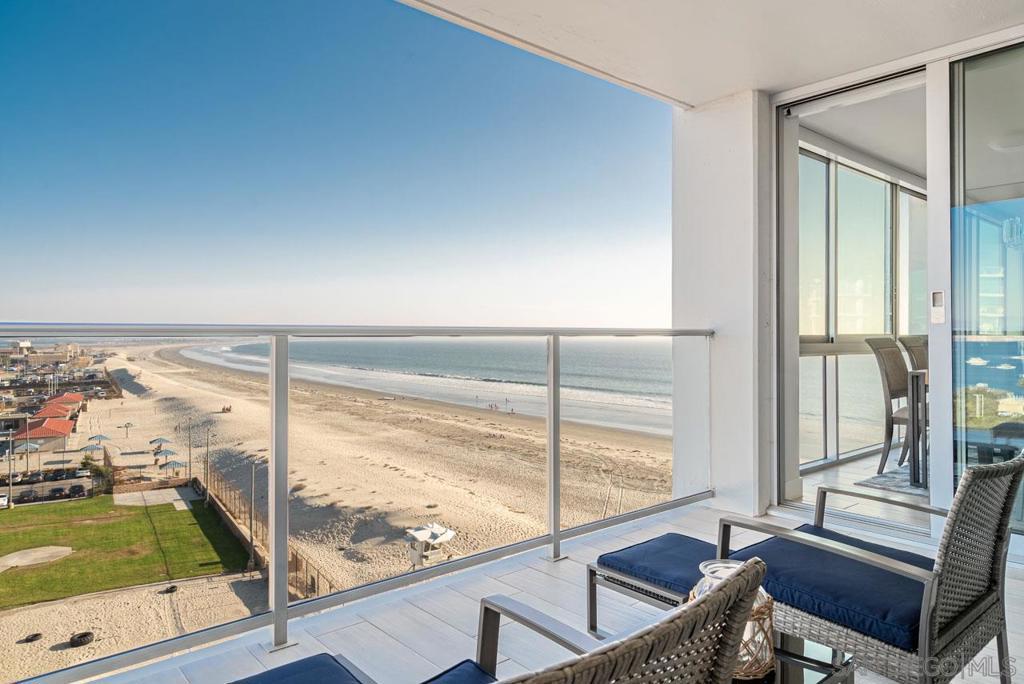 Enjoy the best of Coronado Beach from El Camino Tower. Beautifully remodeled 2 BR/2 BA corner unit boasts gorgeous wraparound ocean and bay views. Comfy King bed in the master, plush Queen bed in guest room. Queen sleeper in the living room. Updated bathrooms. Automated blinds. Beachy tile floors, kitchen with S/S appliances, oversized balcony with seating. One secure parking spot in garage. Quick walk to historic Hotel Del Coronado, shops and restaurants. Enjoy pools, tennis courts and gym.