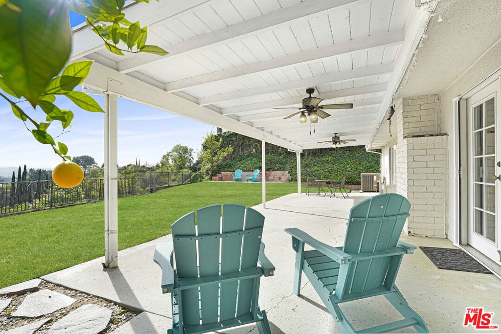 FULLY FURNISHED, turn key, open and airy 4Bedroom/2.5bath mid century ranch style single family home with panoramic valley vista-city lights views! Atrium entry opens to split designed open floor plan with wood laminate flooring, cathedral-vaulted ceilings with recessed lighting, chef's kitchen with granite counters, kitchen island and breakfast nook, den, powder bath, formal dining and family room with stone fireplace. Additional features include custom cabinetry, remodeled baths+ large walk in closets throughout. French glass doors lead to spacious covered, entertaining patio with grassy yard, with lemon and orange trees+ additional elevated lookout patio with spanning valley views! 2 Car garage with driveway parking. Washer/Dryer. Located in a lovely, quiet residential neighborhood with wide streets and convenient freeway access, including 101 freeway. Convenient to Calabasas, Thousand Oaks, Westlake Village, Agoura Hills, Simi Valley, San Fernando, Santa Monica or Beverly Hills. List price includes home complete with furniture, housewares, fully equipped kitchen+ gardener. Available Now!