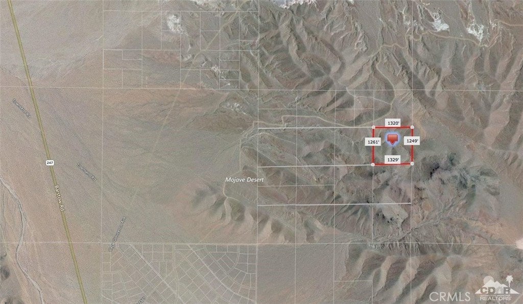 39.4 Acres of land near accessible road. South of the city of Barstow, and East of Highway 247. A beautiful and completely private area for a person who would like to get away from it all, but still be close to civilization. Possible Windmills and Solar Location. Harvest Crops, Equestrian Stables, Build a Single Family Residence, Hospitals, Lodging, a Variety of Uses for RC Zoning! Owner is willing to carry with $1000 Down! A wonderful investment opportunity! San Bernardino County APN # 0417-043-09