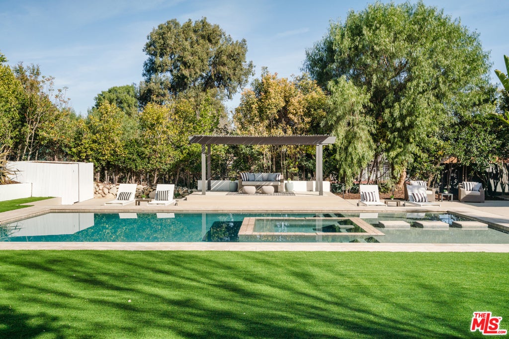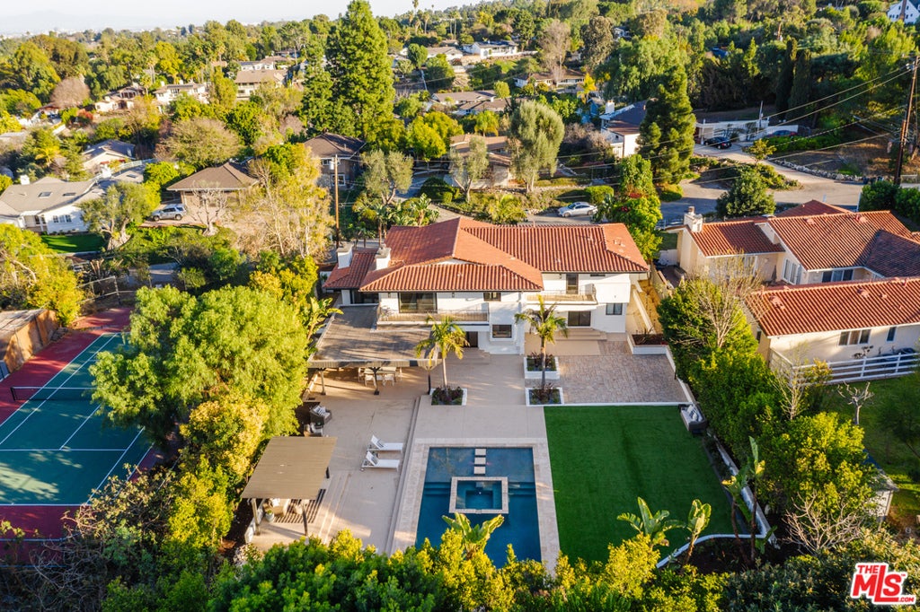 Tucked away within equestrian Rolling Hills Estates is the perfect blend of tranquility and an entertainer's paradise. Over 4,700 SF of luxury inside and almost a half-acre of privacy outside. This home leaves nothing to be desired with five bedrooms, five bathrooms, beautifully appointed formal and casual spaces, as well as an expansive resort-style yard. An expertly crafted kitchen features a large breakfast bar, 6-burner oven, double dishwasher, stainless steel fridge, Jenn Air Steam Oven, built-in espresso maker as well as Sub Zero wine fridge. An en-suite bedroom is on this level with direct access to the yard. The main bedroom retreat with a balcony overlooking the backyard has a gorgeous stone fireplace, magnificent bathroom, and oversized walk-in closet. Three additional en-suite bedrooms are on the upper floor, all with balcony access. Outside, find an expansive lawn, sparkling pool and spa, poolside cabana, and ample dining and entertaining space.