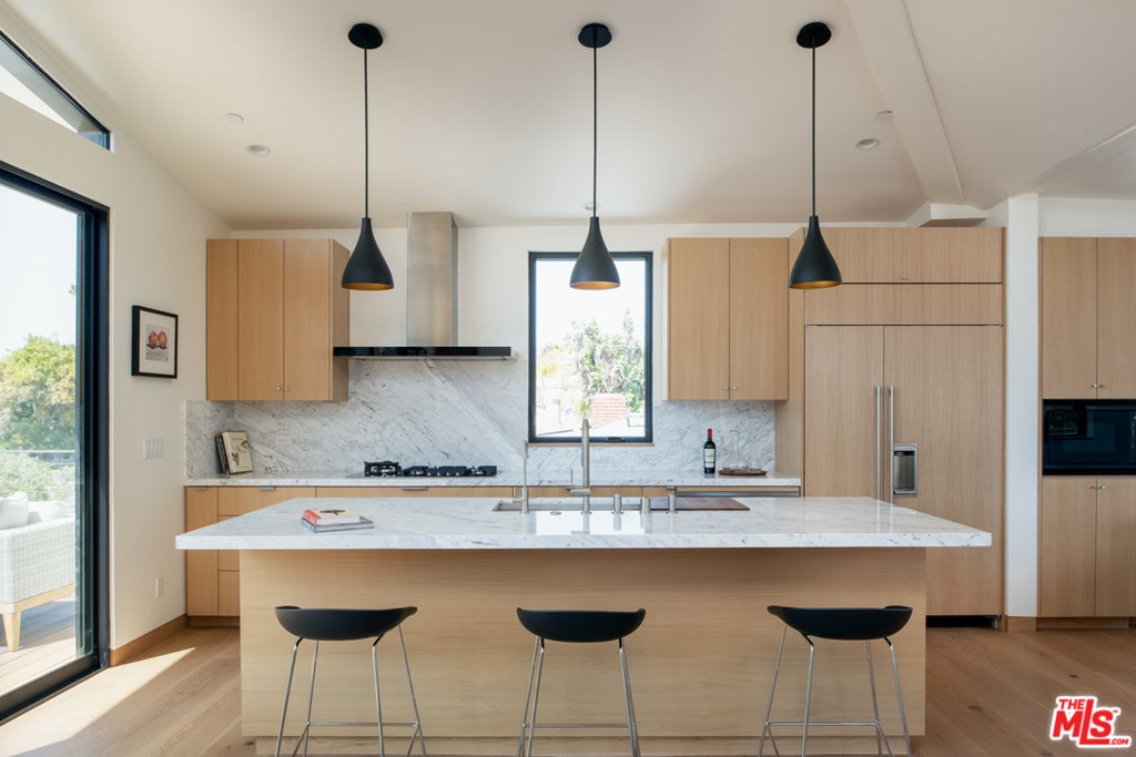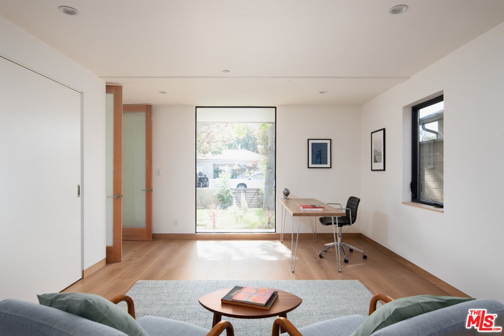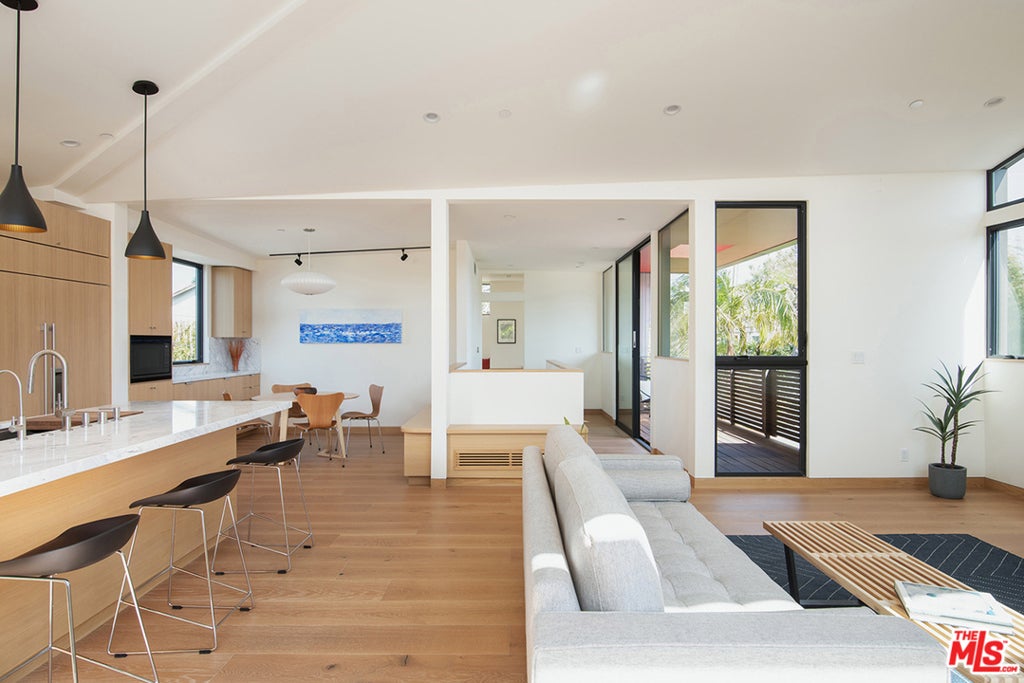 Step out of the ordinary with a newly built home in the coveted Silver Triangle. Elegantly crafted with a beautiful front facade, this home features four bedrooms, 3 baths, and 4 outdoor decks spread over two floors of artfully integrated indoor/outdoor living. A soaring second-floor living/dining space fronting an expansive hardwood deck makes the ideal space for relaxation and entertaining. The splendid main bedroom provides an elevated sanctuary, and an oversized front room (with en-suite bath and wine bar) on the first level can flexibly serve as a guest suite, media den, private office, or even a second living room. Outdoors, the large lot (300 SF bigger than typical), lush landscaping, and cul-de-sac-like street with no alley impart a tranquility rarely enjoyed in a property so close to the amenities (beach, Abbot Kinney, Marina parks) that make beach living special. With refined architectural detailing, high-end fixtures/appliances (Wolf/Subzero/Miele), and ample storage via an enclosed garage and a wealth of custom built-in oak cabinetry, this home by 10-19 Architecture will satisfy your artistic and your functional needs.
