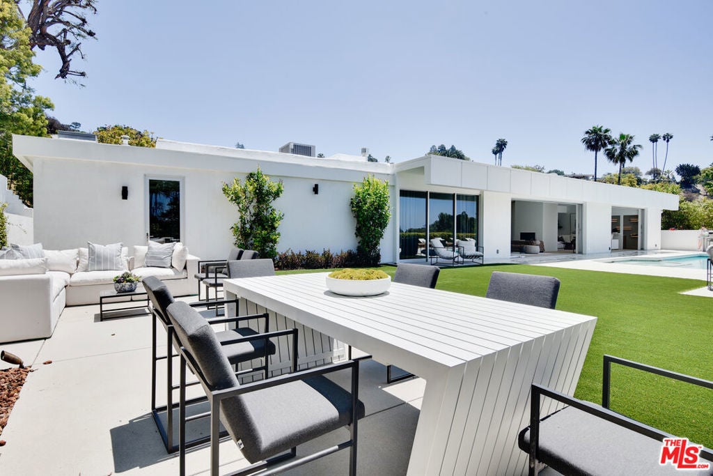 This home and all our listings are available immediately to assist displaced victims from the fires. Available fully furnished and turnkey for short, midterm, or long term lease! This fabulous, newly remodeled mid-century villa is plateau'd in one of Beverly Hills' most exclusive neighborhoods. This one-story home has pocket doors along the whole backside to maximize indoor, outdoor living. There are 5 bedrooms, 4.5 bathrooms, a bar, and two family rooms separated by a 2-way fireplace. The backyard is an oasis perfect for any family holiday, local staycation, or intimate dinner. Agent to verify school district. Please inquiry for rates under one year*