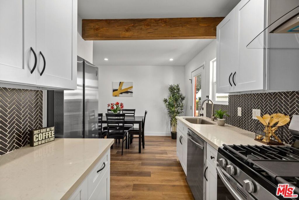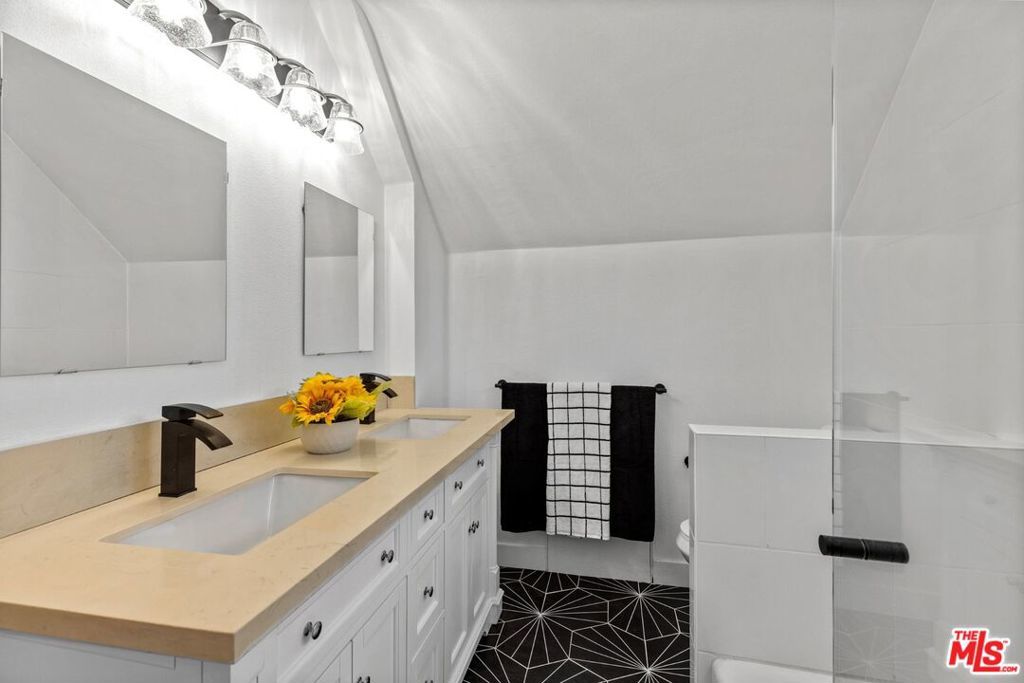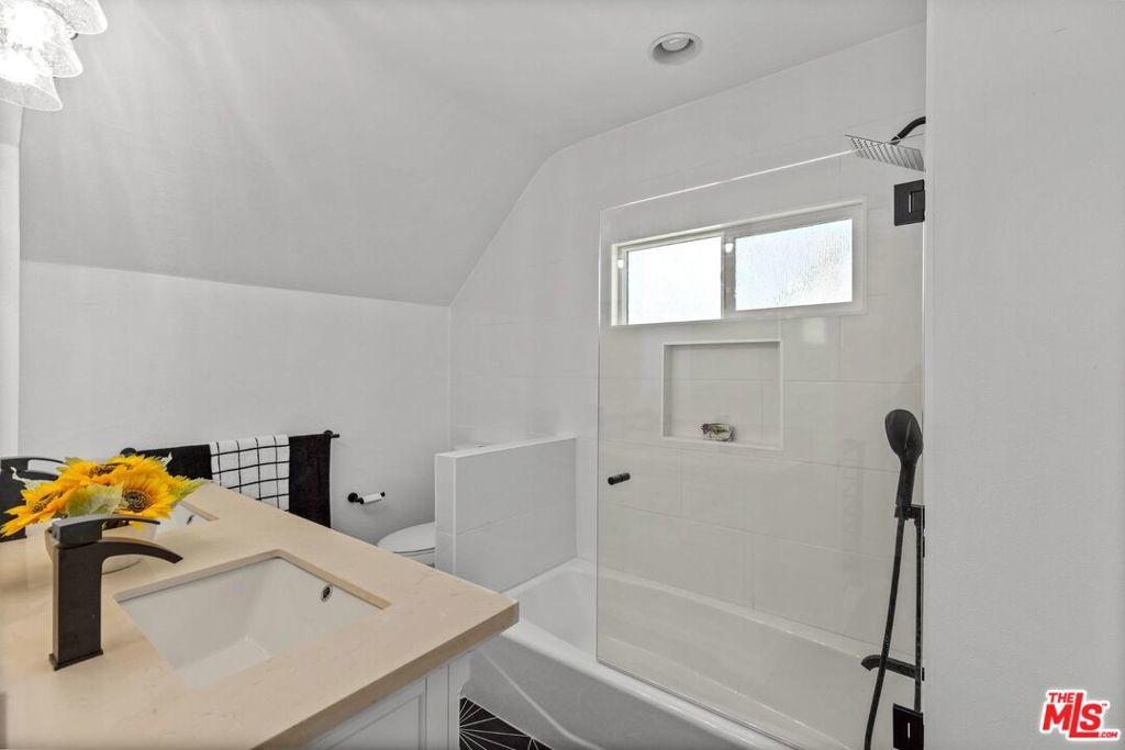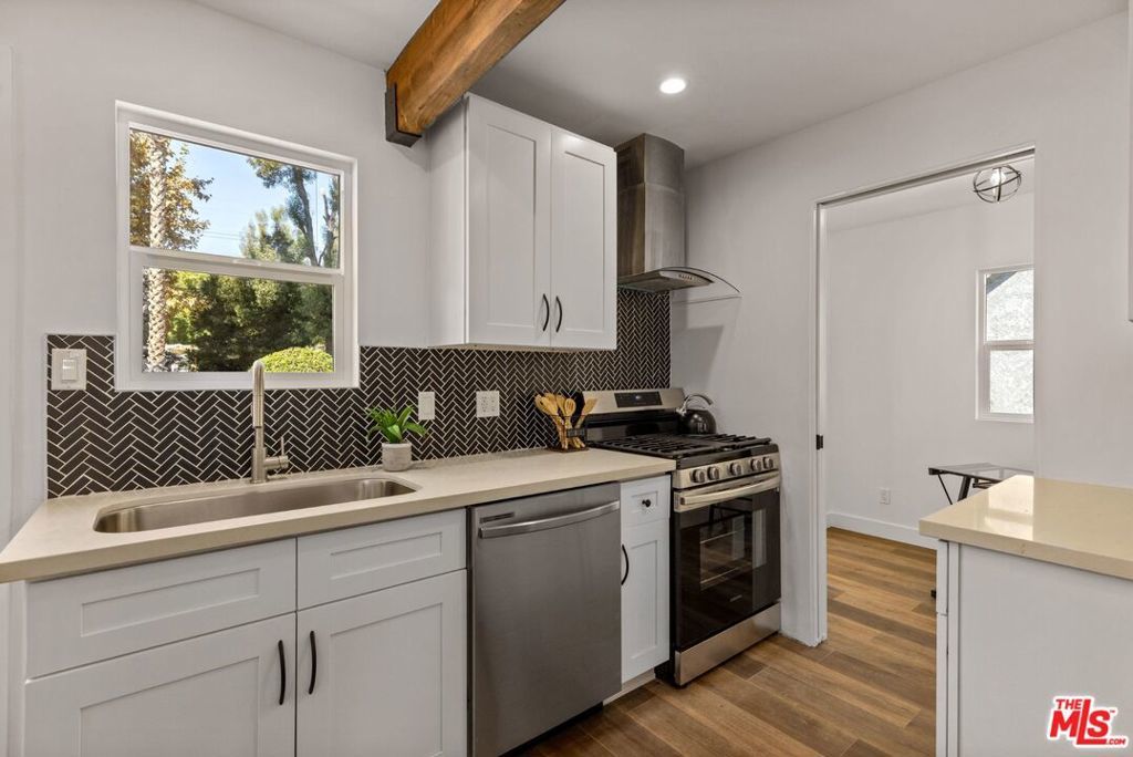 No expense was spared on this stunning whimsical English Tudor completely updated 2 bedroom 2 bath w/ separate office located in a highly sought after exclusive Burbank neighborhood. On a generous flat lot with expansion and/or possible ADU opportunity. The charming entrance greets you w/ a tranquil beautiful newly landscaped front yard & porch where you can enjoy your morning coffee while taking in the neighborhood views. This gorgeous property boasts a modern open floor plan w/ living & dining area w/ plenty of natural light. The sleek kitchen features quartz countertops, custom backsplash, new shaker cabinets, & new brushed stainless steel appliances. The updated bathrooms all have custom designer tile w/ all new/designer vanities, Kohler tub, & new fixtures. An oversized chic private upstairs master suite is also featured w/ two large closets along with a large guest room and separate office. Additional features include new interior/exterior paint, new double pane low emissivity energy saving windows, new floors, recessed lighting throughout, updated electrical/plumbing, new central HVAC, programmable sprinkler system(front yard) & designer lighting fixtures. The lot is ideal for entertaining w/ multiple lounge areas, privacy fencing, and a beautifully finished oversized 1-car garage that can be used as an art studio, game room, or for additional storage space (possible ADU opportunity) with an extended driveway that can fit up to 4 cars. Close to restaurants, Channel Bike Path, LA Equestrian Center, all studios and shopping. Burbank living at it's finest!