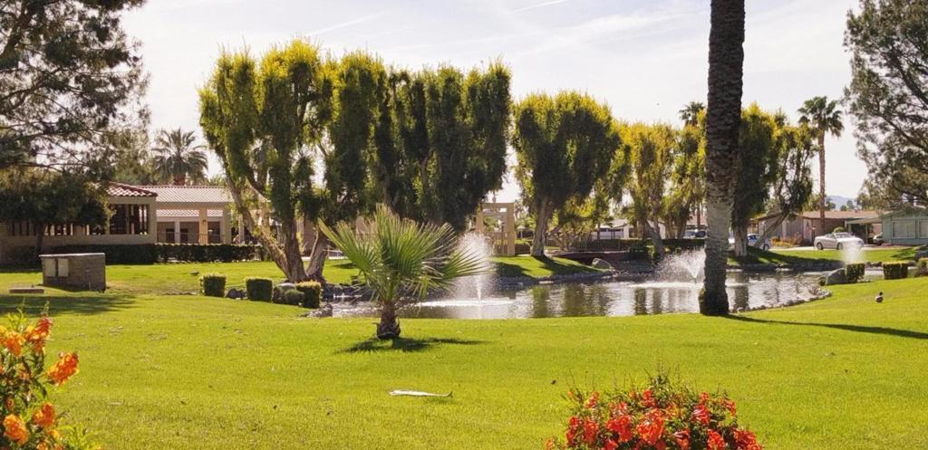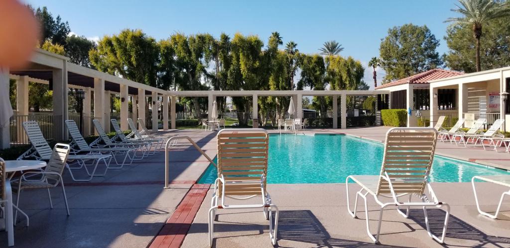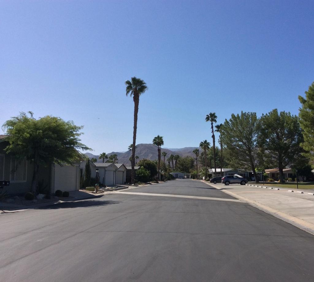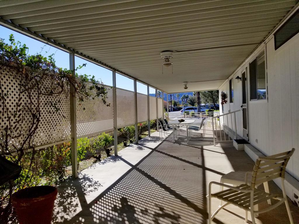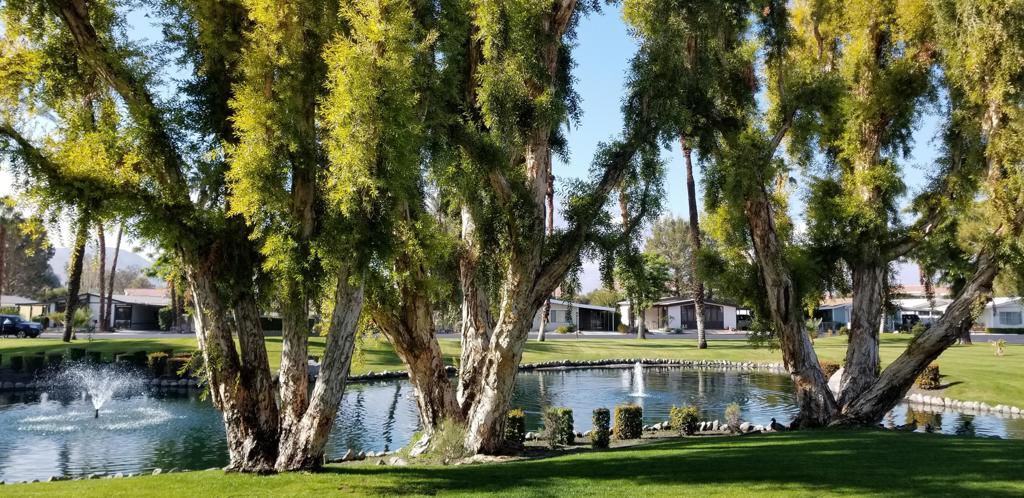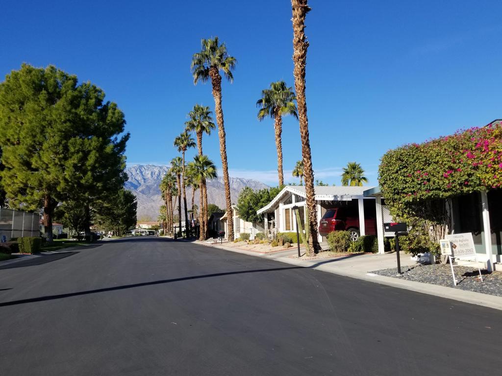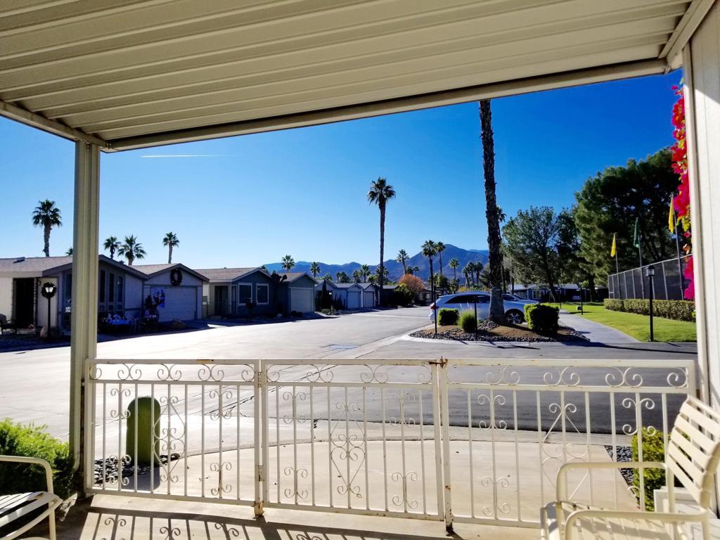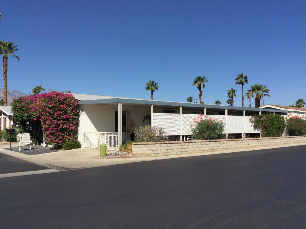 NEW PHOTOS! This pristine home has been maintained beautifully. If you want to update you can, but it is very pretty the way it is. The laminate flooring is through out except for the bedrooms. The living room is open to the dining room and the kitchen is open and filled with light. The patio space has a wonderful view of the southern mountains and park across the street. This is a very comfortable home. The rent for the space will be under $800.00 per month. This is not Indian lease. Call Holly 760-636-3062 to view this property.