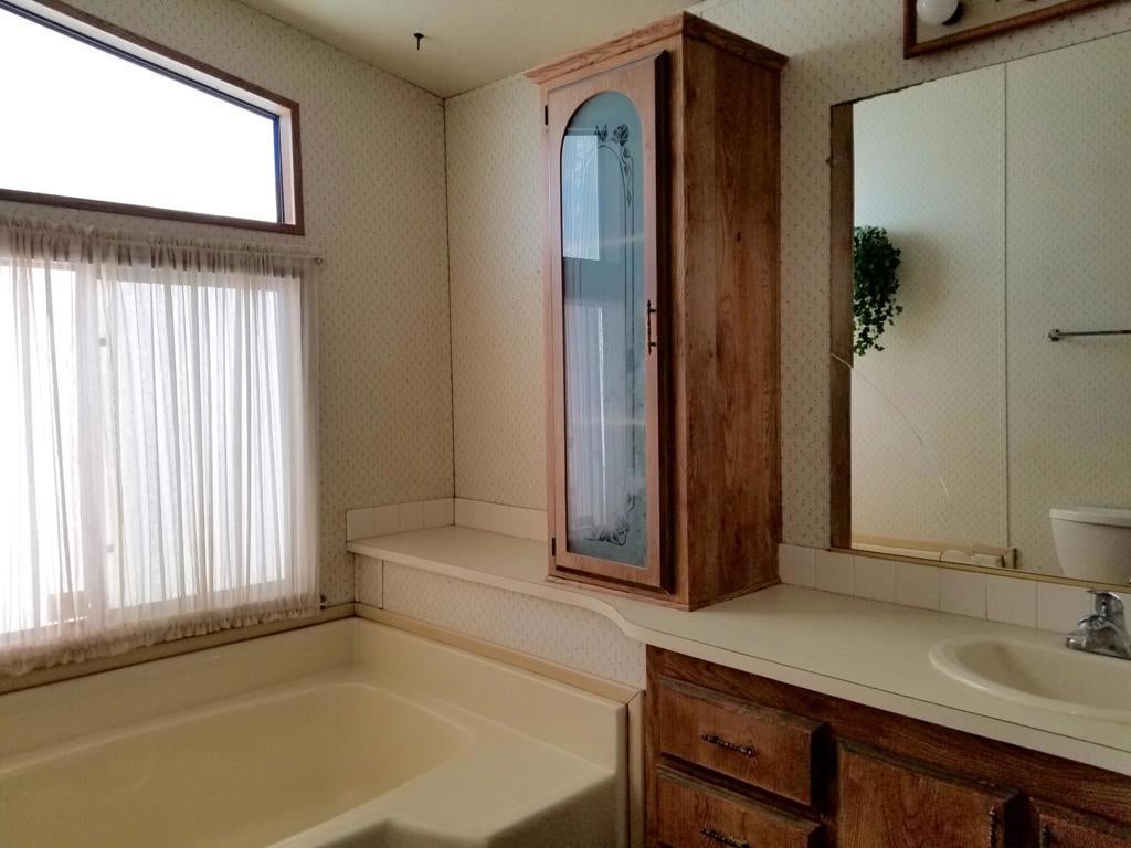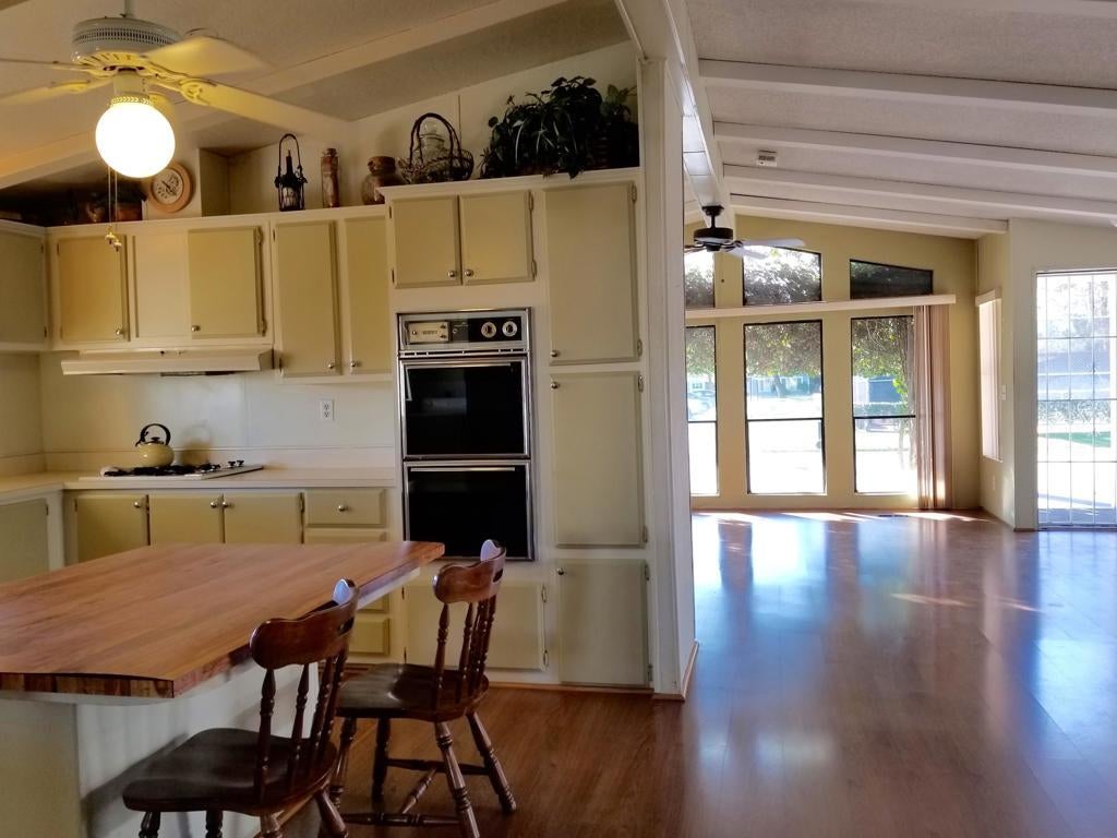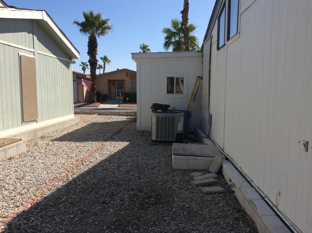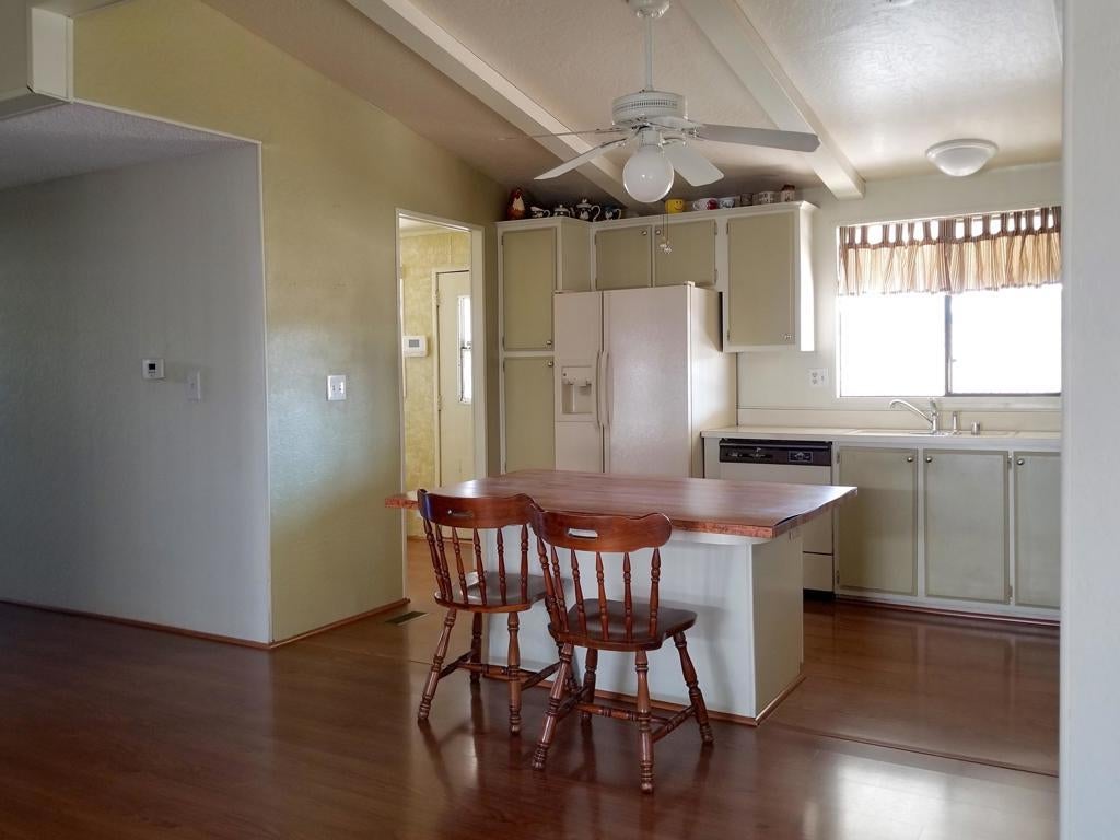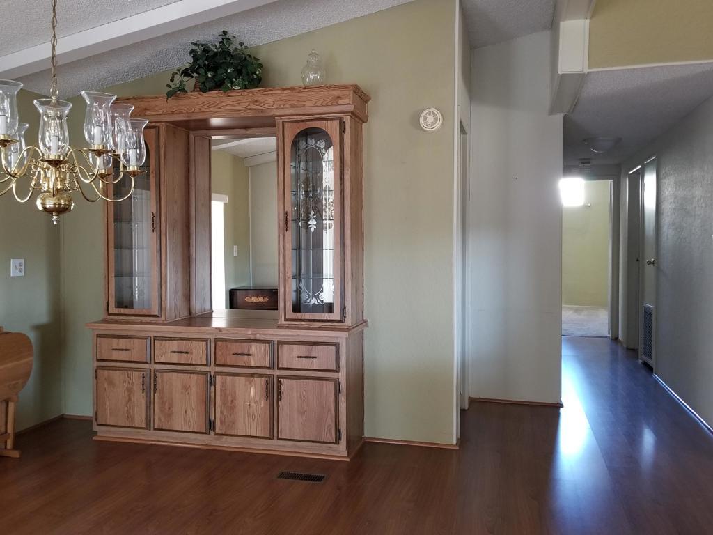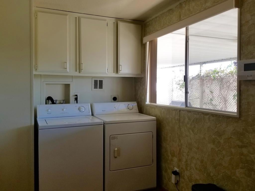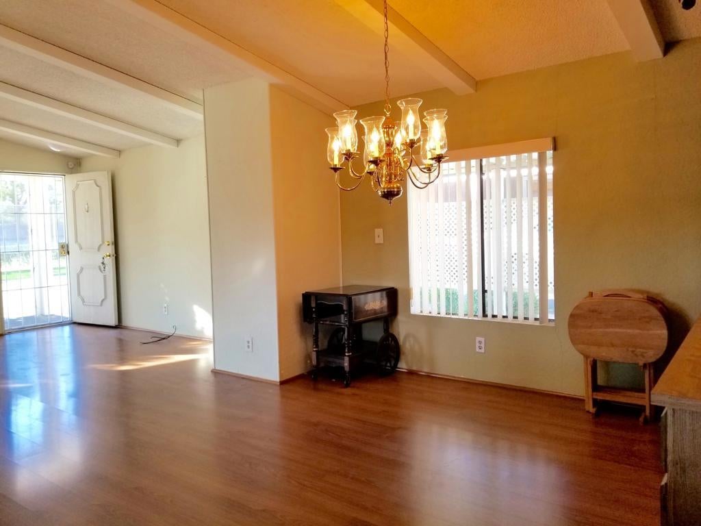 NEW PHOTOS! This pristine home has been maintained beautifully. If you want to update you can, but it is very pretty the way it is. The laminate flooring is through out except for the bedrooms. The living room is open to the dining room and the kitchen is open and filled with light. The patio space has a wonderful view of the southern mountains and park across the street. This is a very comfortable home. The rent for the space will be under $800.00 per month. This is not Indian lease. Call Holly 760-636-3062 to view this property.