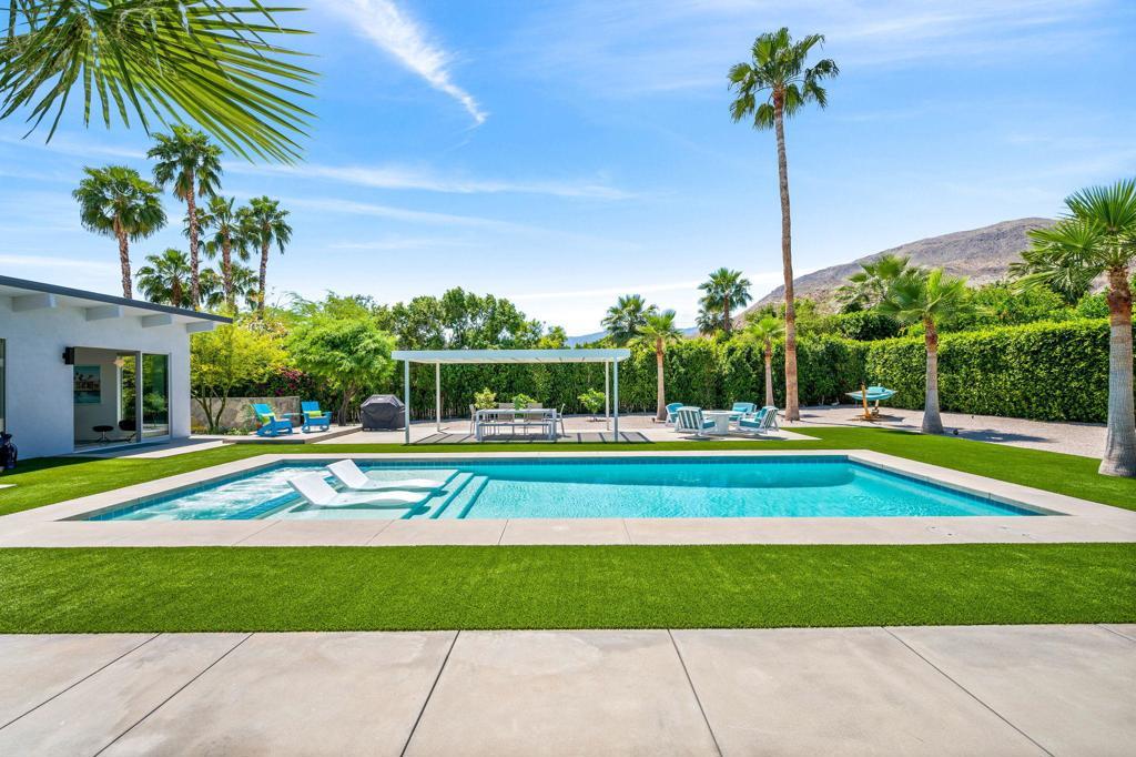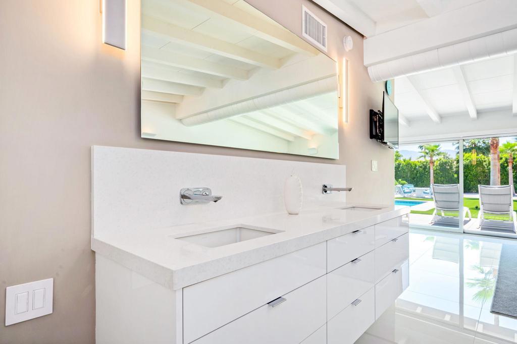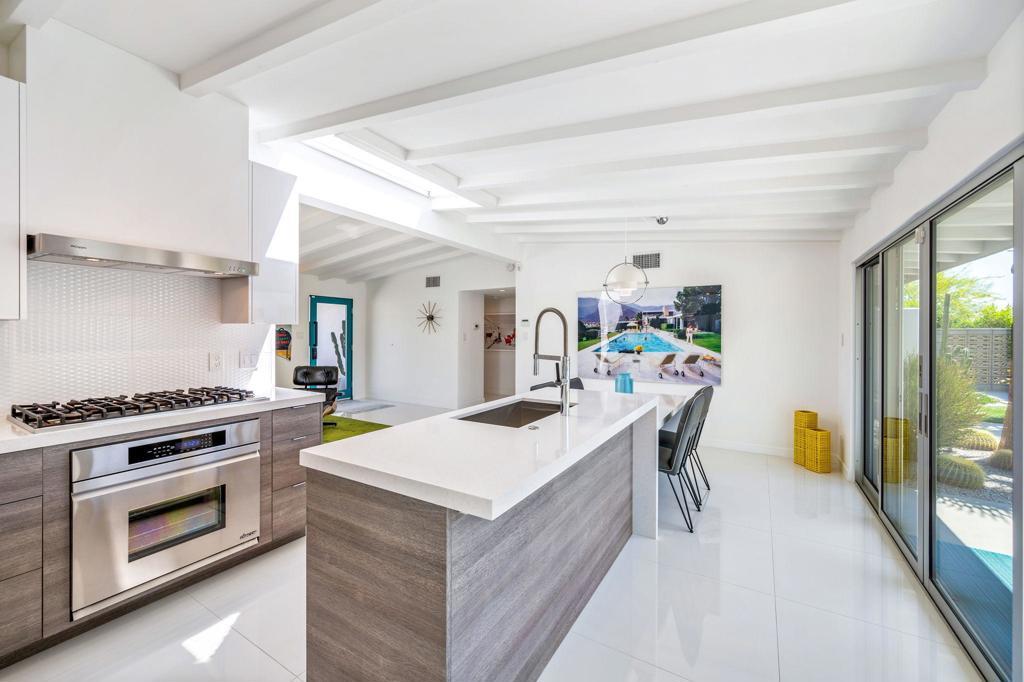 PERFECT VIEWS and LOCATION!!! Mid-century meets new-century modern at its finest! NOTHING was left undone in this tasteful renovation. Built in 1955, this private ranch-style 4 bedroom 4 bath, boasts almost 2600 sf!!! FEE land, NO HOA and ideally faces the beautiful mountains of Rancho Mirage, on almost HALF of AN ACRE! The main house is 3 bedrooms 3 bath at 2028 sf and the recently finished CASITA/guest house is 535 sf, built to match the style of the house to perfection. INCLUDES newer kitchen, baths, plumbing, electrical, appliances, salt water pool and spa, pool equipment, HVAC, roof, windows and Western sliders (top of the line), instant hot water, custom-pavered driveway and epoxied garage with zoned AC. Newest addition, sub-zero fridge and brand new dishwasher. Walking distance to Coachella Valley renown, ''The River'', for dining and shopping. If you think the pictures are amazing, its twice as good in person. Schedule an appointment today. You wont be disappointed!!!