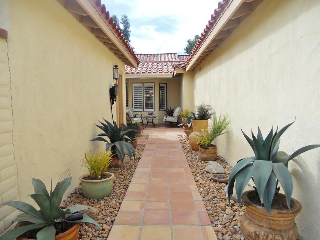 Step into a beautiful entry courtyard featuring an electric retractable awning at this charming 2BD/2BA home. Inside, you'll discover numerous upgrades, high smooth ceilings and custom paint that create a welcoming atmosphere. The kitchen is a standout, equipped with stainless steel appliances, a cozy breakfast nook by the bay window and refurbished cabinets. Both bathrooms have been elegantly remodeled, showcasing spacious tiled showers. Venture onto the private extended back patio facing west, where you can soak in the breathtaking views of the majestic mountains, serene water, and lush green golf course below. This is a rental opportunity you won't want to miss!