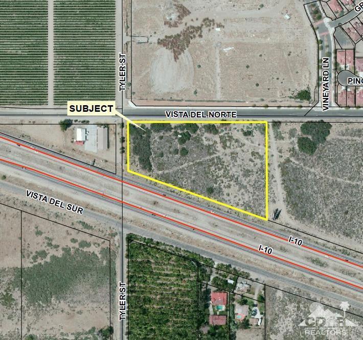 Prime development property in the immediate path of growth with excellent freeway visibility. Across from The Vineyards RV Resort and Golf Course. Just down the street from Spotlight 29 Casino, Fantasy Springs Casino and Eagle Falls Golf Course. Also available for Lease. Approximately 700 feet freeway frontage. Last exit Eastbound for 105 miles. Nearby events include: Coachella Music Festival - 250,000 visitors, Stage Coach Music Festival - 100,000 visitors, Riverside Date Festival - 276,000 visitors BNP Paribas Tennis Tournament - 439,000 visitors