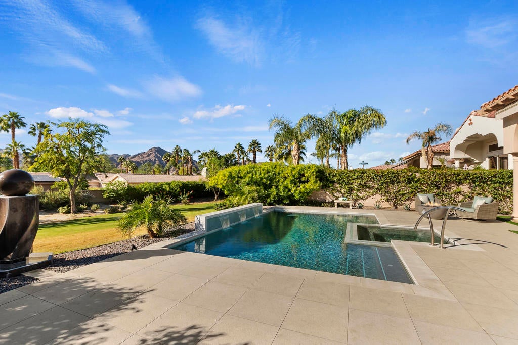 Seasonal lease! Exceptional contemporary 3-bedroom home in Rancho La Quinta has beautiful mountain views, with southwest exposure. This is a fully turnkey property with large pool and spa! The master bedroom has a king bed adjacent to its own private patio. The second guest is spacious and has a king bed, and private bath. The den is equipped with a pull-out couch for guests and has its own private bath. The backyard is spacious, has a lovely barbeque and boasts a large swimming saltwater pool and spa. There are lovely sunsets also and expansive mountain views! Come make this your vacation getaway! Please call for availability and pricing!