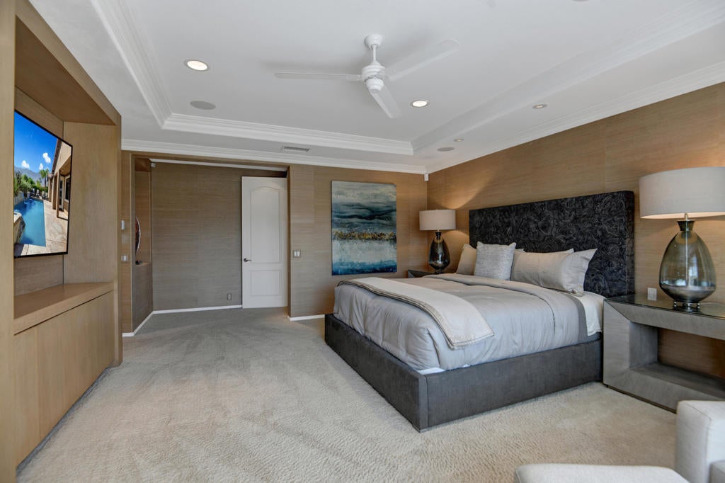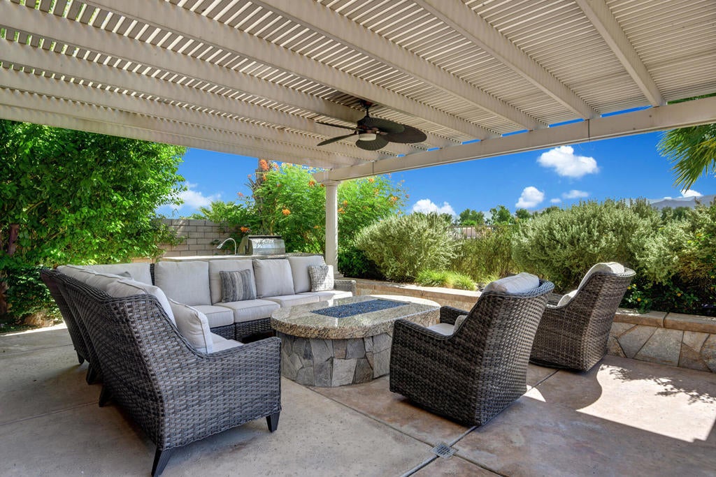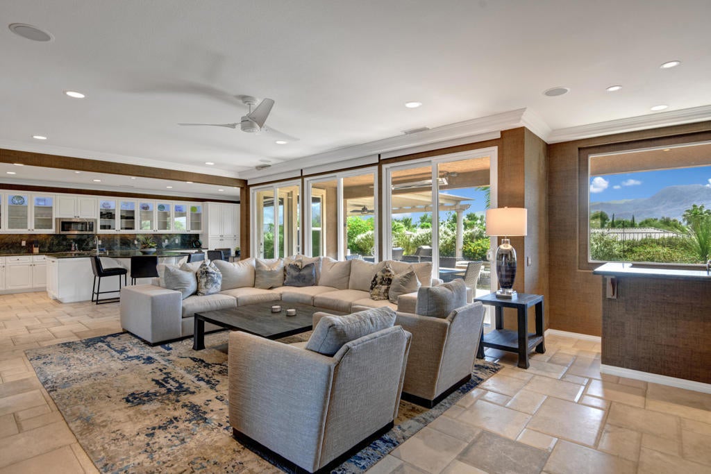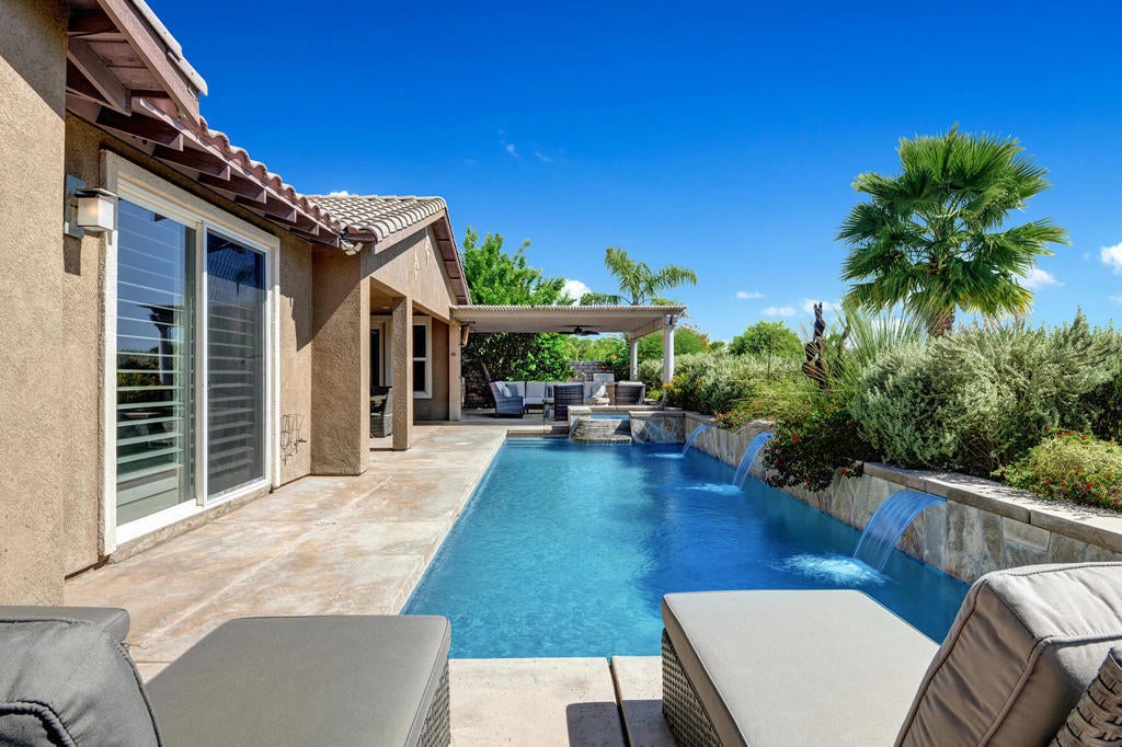 Get ready to be wowed! The owners of this home have spared no expense in creating a vacation paradise with richly-appointed designer furniture and stunning artwork. Amazing location only 15 minutes from Palm Springs and 15 minutes from Palm Desert! Upgraded, ultra-fast 1 gigabyte WIFI. Huge open concept kitchen, dining and living areas backed by incredible views through the floor to ceiling sliding glass doors. The kitchen is very well equipped and offers stainless steel appliances with gorgeous granite countertops and impressive custom lit glass front cabinets above. Adjacent to the kitchen is the spacious family room with designer furniture and a large flat screen television. For further indoor entertainment, the billiards room is a great place for the whole family to enjoy a competitive game of pool. Outside you'll find jaw-dropping views surrounding your private pool and spa with plush lounge chairs to soak up the sun. The trellised seating area has a built-in BBQ with comfortable and stylish seating surrounding a fire table for those chilly winter nights. The elegant primary suite Master bedroom offers extreme comfort with a king size bed with the latest Intellibed technology with adjustable base, gorgeous custom build-ins, a large walk-in closet, and flat screen television. There are two nicely appointed guest bedrooms and a wonderful private office that doubles as a 4th bedroom. All offer attached and nicely updated full bathrooms.