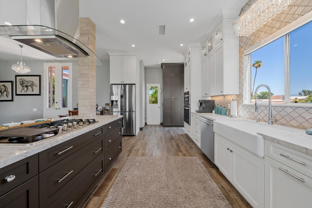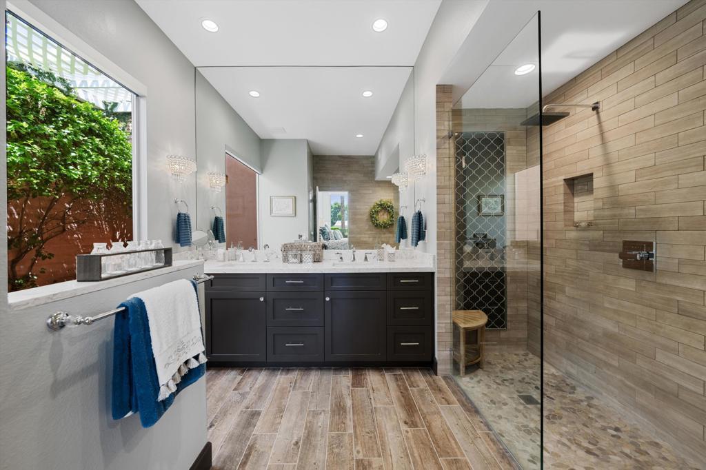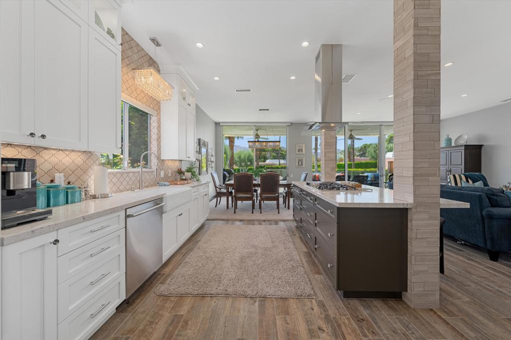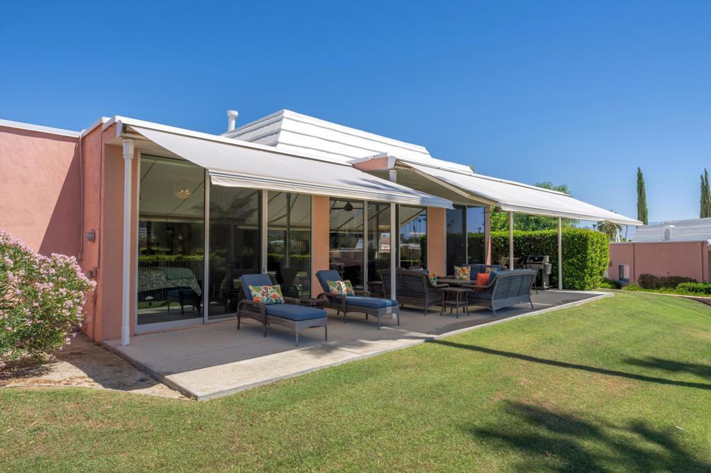 RENTED Dec 13, 2025 - March 31, 2026. Enjoy your unforgettable Desert vacation in this fully remodeled Hollywood Regency gem with state-of-the-art modern features. Nestled in the iconic Marrakesh Country Club on a quiet street with beautiful mountain views and close to the clubhouse, this home offers perhaps the very best location in the club. Attention to every detail and gorgeous finishes are seen throughout this meticulously upgraded home. Walls of glass create an airy feeling and bring in the beauty of the outdoors for an exceptional indoor-outdoor living experience. Entirely reimagined open concept chef's dream kitchen features breakfast bar, two-toned custom cabinets, gas cooktop, counters are topped with quartz slab and striking matte marble tile backsplash for an elegant touch. Both bedroom suites offer lavish bathrooms inspired by dream magazines with striking honed marble brick subway tiles, luxurious vanities and curbless showers. Primary en-suite bathroom features a free-standing soaking tub that exudes luxury and comfort. Porcelain wood-look plank tiles, all new double pane sliders, fireplace, motorized window screens and retractable awnings complete this amazing home. Marrakesh is located just minutes away from the famed El Paseo Drive with world-class shopping and dining and within close proximity to the McCallum Theater and the world-renowned Indian Wells Tennis Gardens. Renter seasonal club priviledges are available and may be added with additional cost.