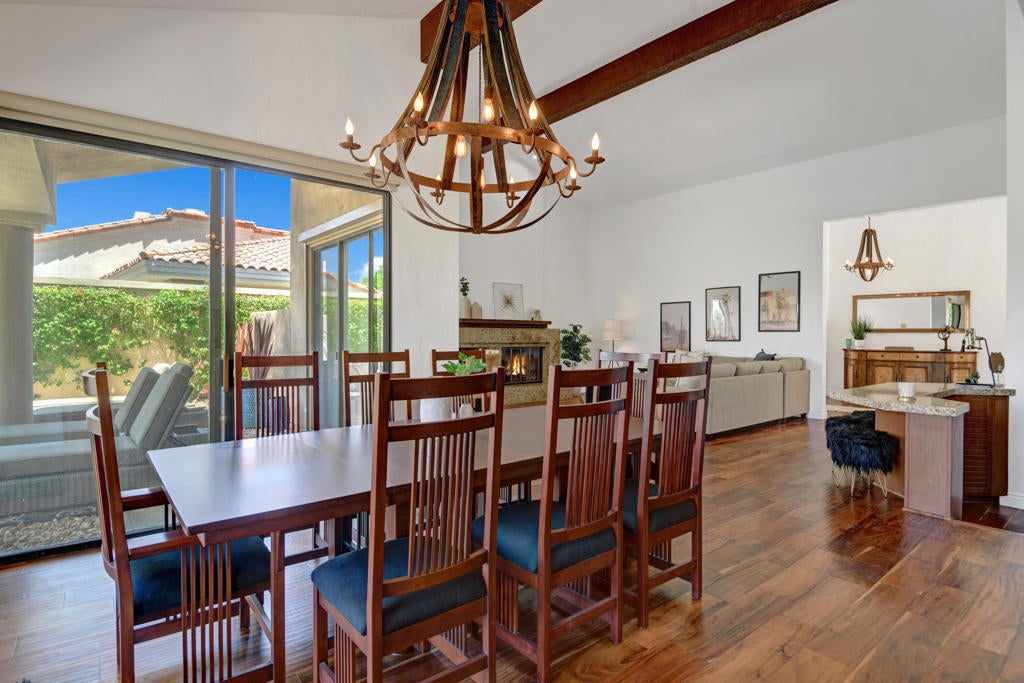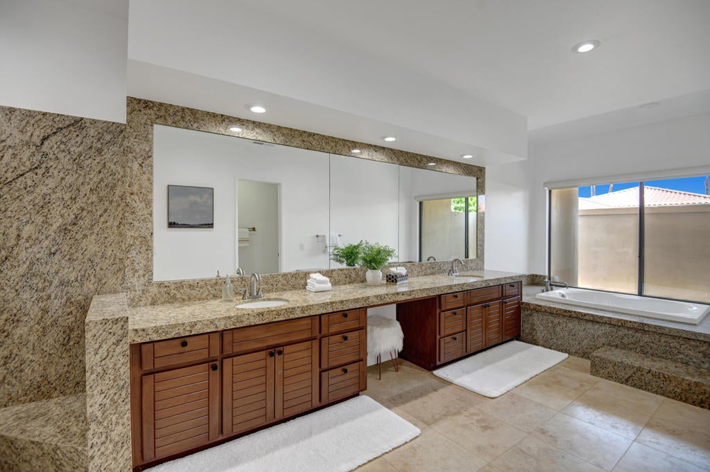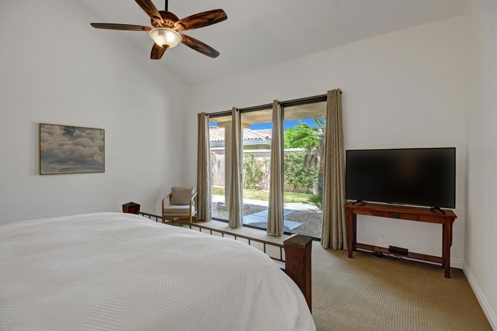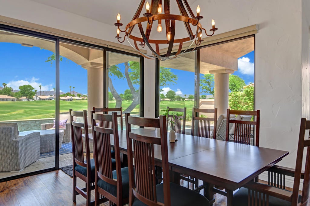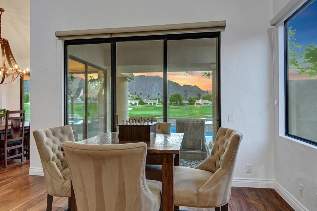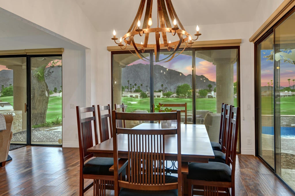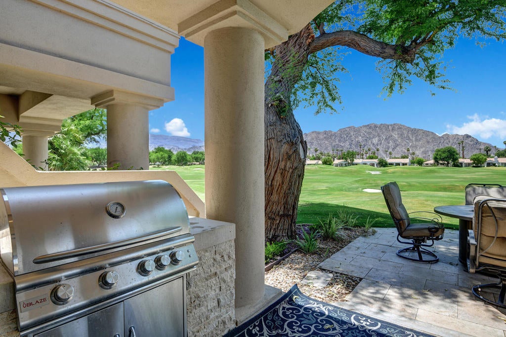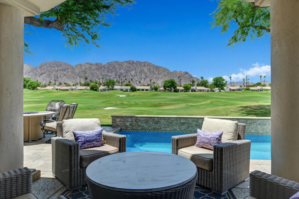 Enjoy gorgeous views of the Santa Rosa Mountains and the 8th Fairway of the Stadium Course at world renowned PGA West. Entertain friends and family in this beautifully upgraded Legends 40 open concept floor plan which offers 3 ensuite bedrooms, powder room, formal living with fireplace and dining with soaring ceilings and a lovely chandelier. Upon entering this very spacious home you see a large wet bar with seating for four for those fun evenings spent entertaining. This home also has a separate family room with a large flat screen television and offers ample seating for all to enjoy a night in. This home offers numerous upgrades including a temperature controlled built-in wine storage for 200+ bottles of your favorite wine selections. The kitchen has all granite countertops, all stainless-steel appliances, large island with sink, and a bar with seating. The backyard has a built in BBQ, gorgeous fire pit, and enough seating for everyone while enjoying that magnificent view. Lounge in your own newly completed pool and spa, featuring salt water, Pebble Tech and a chiller feature for the hotter months. What a better way to enjoy our warmest days when you have the option of chilling the pool to fit your needs! This home was made for entertaining and thoroughly enjoying our desert lifestyle that we all love so much. Rate varies by month.