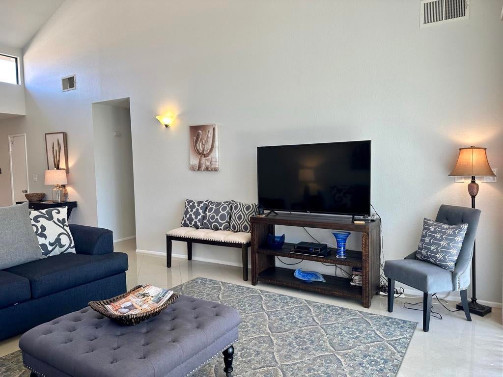 Discover this beautifully renovated 2BD/2BA condo, perfectly situated in the heart of the Club. Enjoy breathtaking western views of the golf course and majestic mountain range. The modern kitchen and elegant tile flooring throughout add a touch of luxury, while the inviting sunny patio and serene courtyard provide the perfect outdoor retreat. This exceptional opportunity won't last long--schedule your visit today!