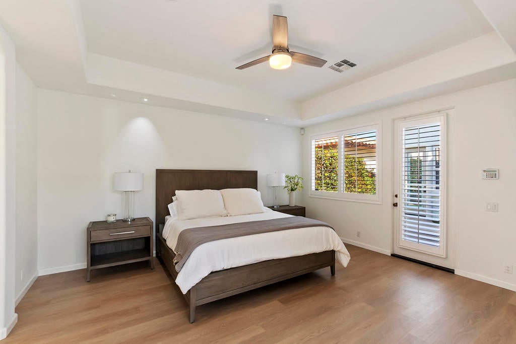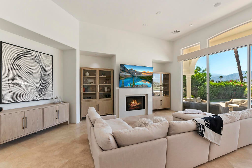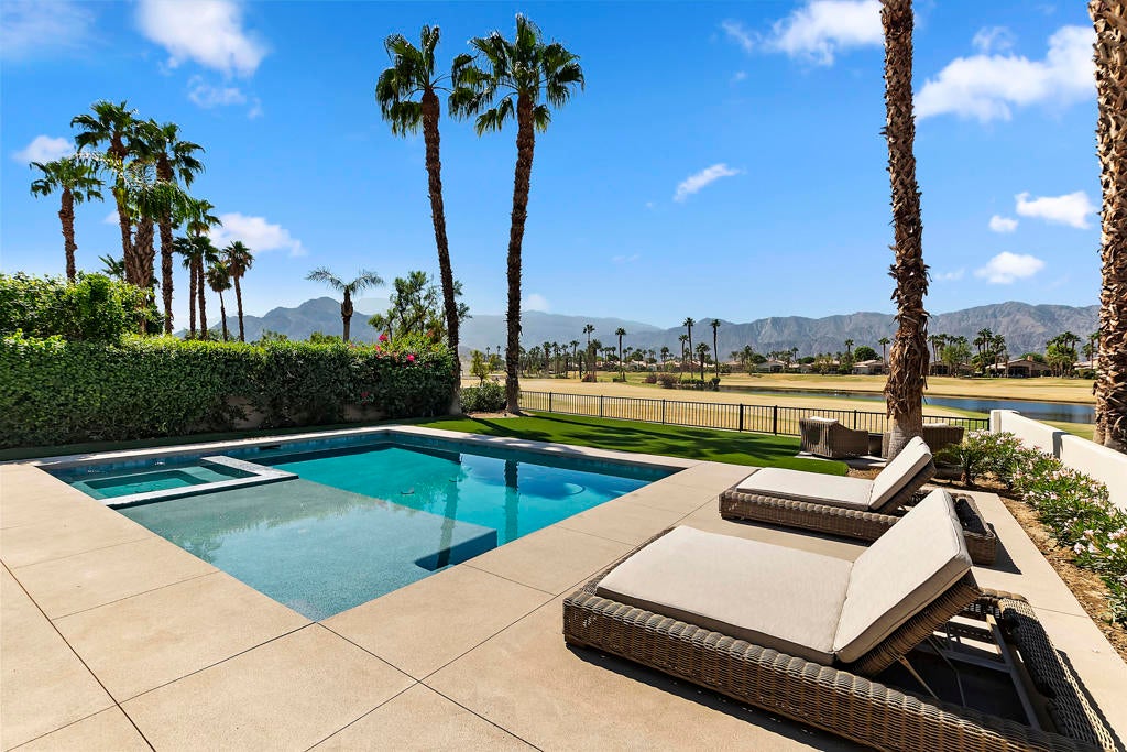 This exquisite 4 bdrm 3.5 bath is nestled in the prestigious Rancho La Quinta Country Club, offering breathtaking views of the serene lake and fairways on the world renowned Pate course. Step inside this elegant home complete with a spacious open floor plan, adorned with high ceilings and an abundance of natural light. The gourmet kitchen is a chefs delight featuring top of the line appliances, double wall ovens, twin bar fridge, breakfast area and a large island perfect for entertaining guests. The living area is an oasis of comfort with a cozy fireplace and large windows that showcase the picturesque views of the San Jacinto mountains and the inherent majesty of Rancho La Quinta. This stunning home is a perfect combination of luxury and comfort with ample sleeping arrangements including 2 king size beds, 1 Queen and 1 double bed. Step outside onto the expansive patio where you'll find the perfect setting for outdoor entertaining or relaxation. Take a dip in the salt water pool or spa, or simply bask in the sun while enjoying the picturesque views that surround you. Don't miss this opportunity to experience a true oasis of tranquility and sophistication. Please call for Availability