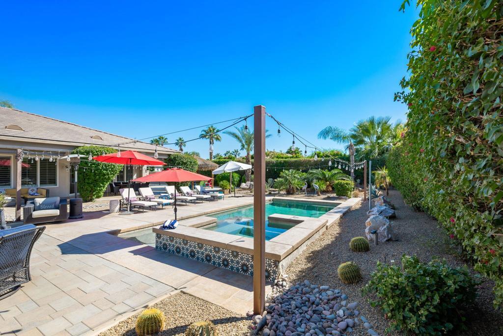 Available Now! Short term Seasonal or long-term lease. Private, Luxurious Estate, tucked in behind the gates at Desert River Estates! A private Tranquil Oasis in the middle of all this Beautiful Desert Resort has to offer awaits your arrival! The Estate sleeps 10 in 5 Bedrooms with 3.5 baths! Turnkey Furnished, with an Upgraded and open concept Kitchen perfect for entertaining in, as is the Outdoor BBQ Station, Night lit Saltwater, Pebble-Tech Pool & Spa, and separate Firepit perfect for evening gatherings! This is Indoor/Outdoor Living at its finest. Your Private Oasis is truly in the choicest of Locations, just a mile from El Dorado Polo Grounds & Coachella Music Festivals. 3 minutes' drive to Shopping and Dining at the new Canopy Citrus Plaza. Short drive to The Tack Room and Jackalope Ranch. 4 miles to Silver Rock /Talus Public Golf Course, 5 miles to Old Town La Quinta, 5 miles to Indian Wells Tennis Gardens and only 8 miles to El Paseo. Call me today for additional information and book your seasonal retreat or long- term rental today! 760-895-8513