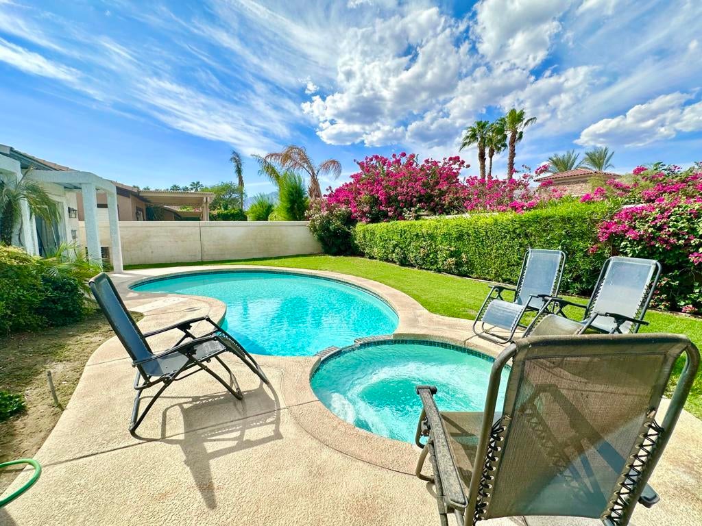 This home is available for monthly rental, in La Quinta that is for 31 days. This home is located close to activities, shopping and restaurants. This home has four bedrooms. The office has been added as a 5th sleeping area, with a shared 'jack and jill' full bathroom.The swiming pool and spa are West Facing, which means there will be sun most of the afternoon. Pleasant walking area throughout the community. There is a park area connected and has another community swimming pool with a tennis court. The Chateau is within walking distance and offers a nice dining menu with out door seating off the Lake.2024 Summer Rates May thru September 30, 2024 is $7,000 per month and tenant pays the utilities.
