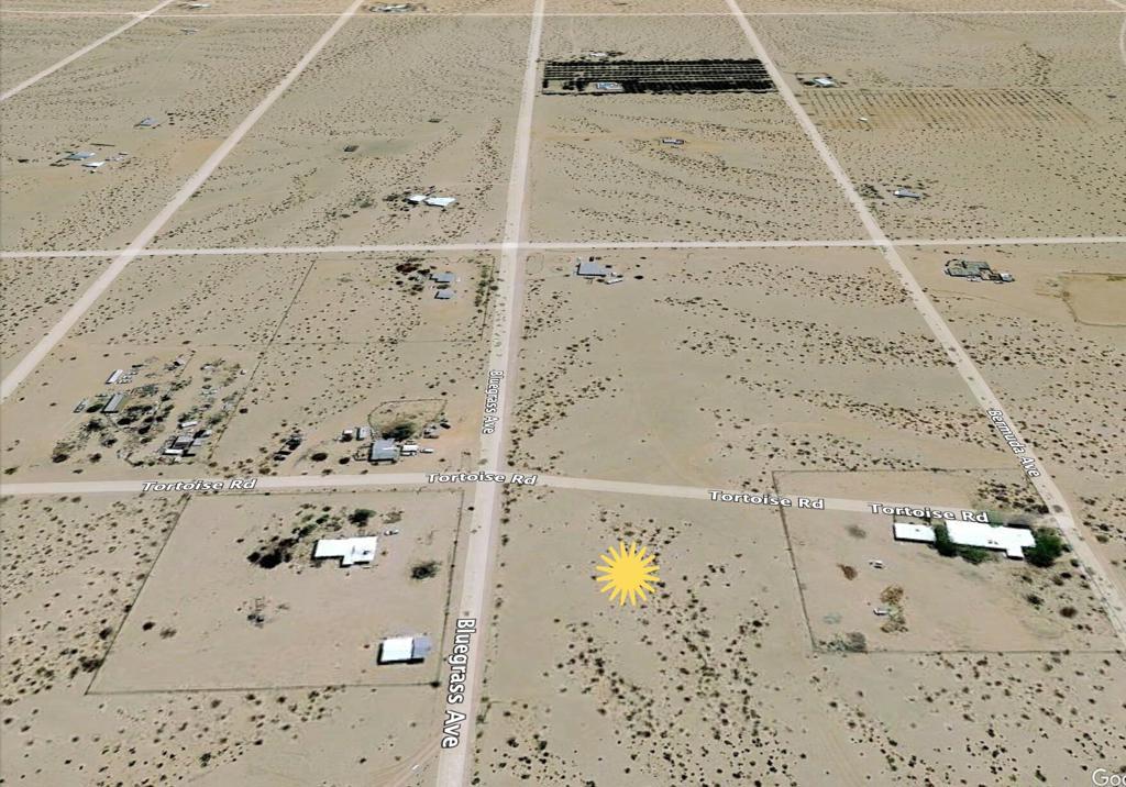 BLUEGRASS AVE., 29 PALMS $19,000 - Beautiful 2.5 acre parcel located on Bluegrass Avenue in 29 Palms. This property features water and electric in the street, a fire hydrant across the street, and nice ranch homes nearby. Perfect for those looking to have horses, dogs, and nice neighbors, with a date farm nearby providing a stunning backdrop. The land is ready for building, with flat terrain and utilities already in place. Partially fenced on one side, with dimensions of 332 X 329 = 108900 Sq Ft = 2.5 Acres. Owner financing available with 20% down ($3,800.00) and a 1st Trust Deed of $15,200.00 @ 7% interest amortized over 5 years, payable $300.98 per month + $15.00 loan service fee. APN#0633-201-41-0000. DIRECTIONS: From Hwy 62 go north on Lear Avenue then right on Pole Line Road then left or north on Bermuda Ave. then right on Winters Road then left on Bluegrass Ave. (aka TuPelo Trail) lot on left side on corner of Tortoise Ave. Look for sign.