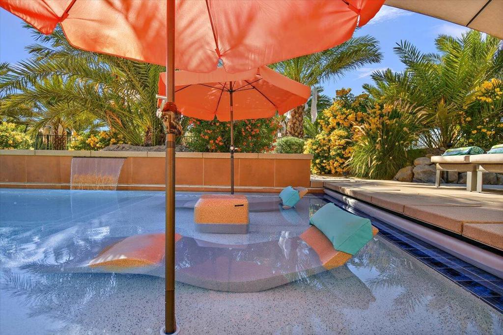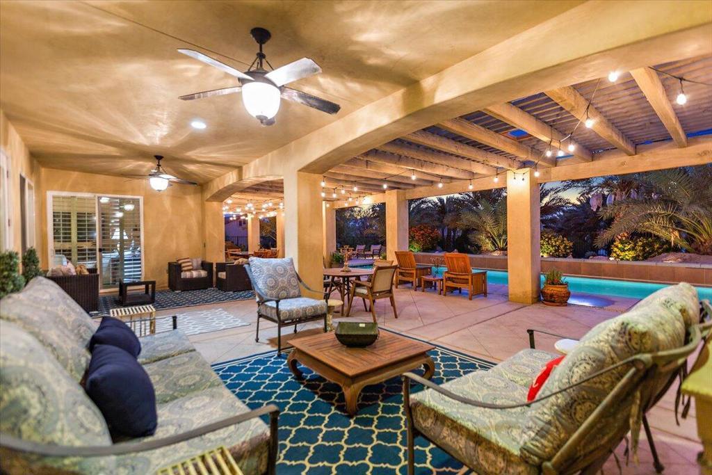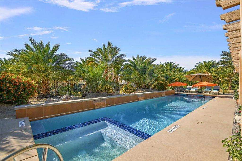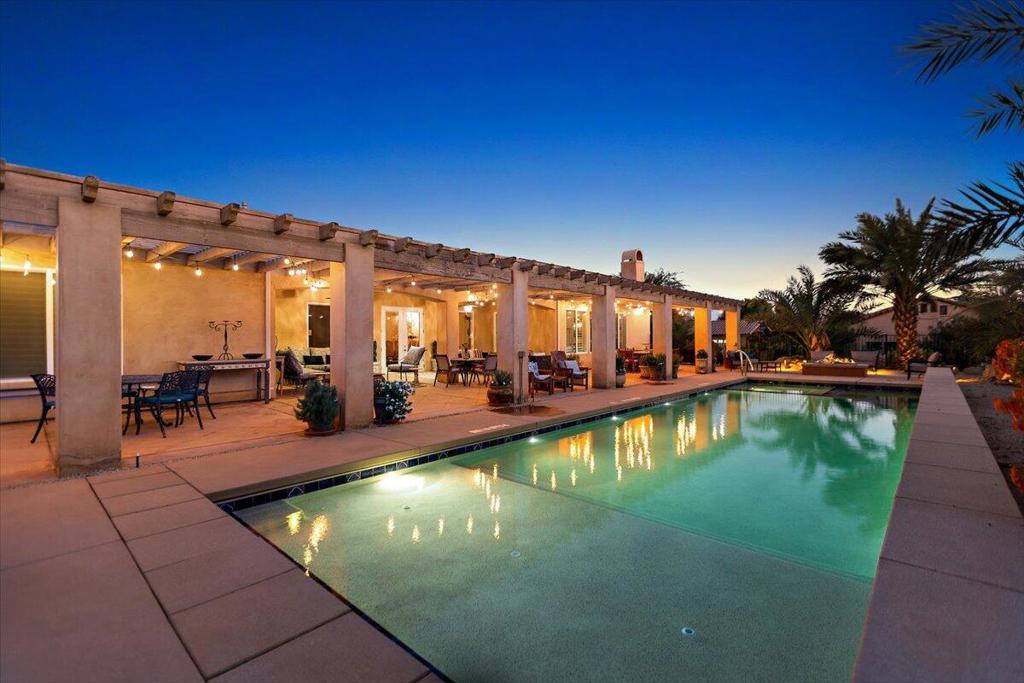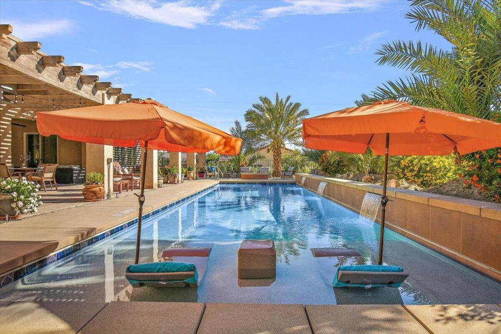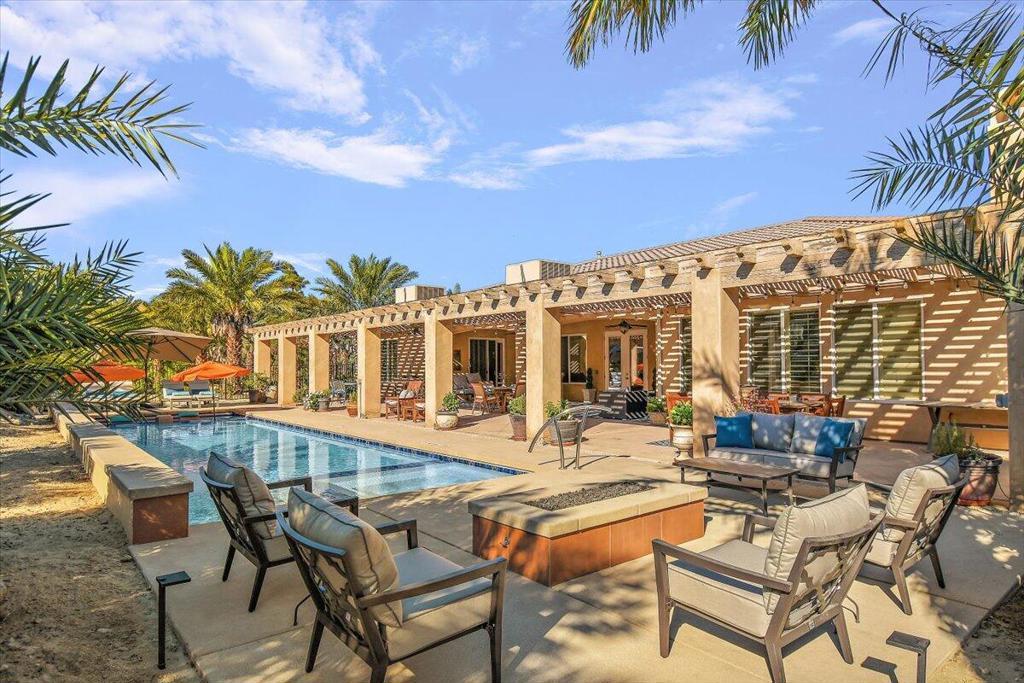 Welcome to Villa Barhi! This unique Mediterranean Palazzo offers a glorious reimagined outdoor space and awaits your enjoyment. Refresh in our oversized saltwater pool - complete with spa, waterfalls, and an in-water lounge area. After your swim, soak up the sun in one the numerous lounge areas, or grab a book and stay shaded in our expansive covered patio. After being mesmerized by the stunning sunset over the San Jacinto mountains, all those outdoor spaces transform into your personal stargazing basecamp. Light a fire, pour a glass of wine, and enjoy the cool desert nights!The spacious interior features a gourmet kitchen, multiple dining and living areas, fireplace and a private office. Sleeping arrangements include 4 bedrooms and 3.5 baths with a generously sized primary suite featuring a California King Sleep Number bed, Jacuzzi tub, shower with body sprays, dual vanities, and a huge walk-in closet. The junior primary suite offers a standard king Sleep Number bed, ensuite bath and walk-in closet; while the remaining bedrooms feature queen beds and share a Jack n Jill bath with dual vanities.Located 20 minutes from downtown Palm Springs, with easy access to the Coachella Music Festival, the new Acrisure Arena and all our desert playground has to offer. Our horse corral accommodates up to 6 horses and your dog is welcome too! This perfect home has all the amenities you are looking for with the added benefit of tranquility and serenity.Inquire for rates & availability
