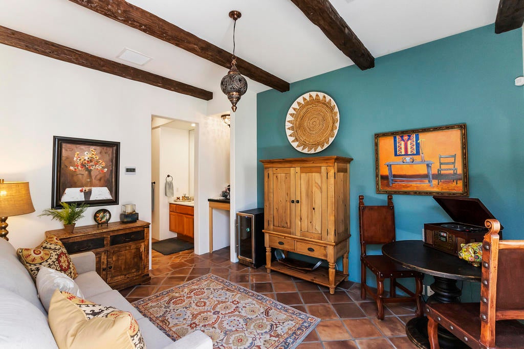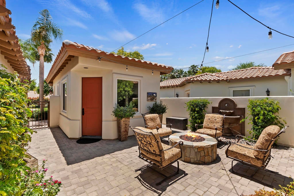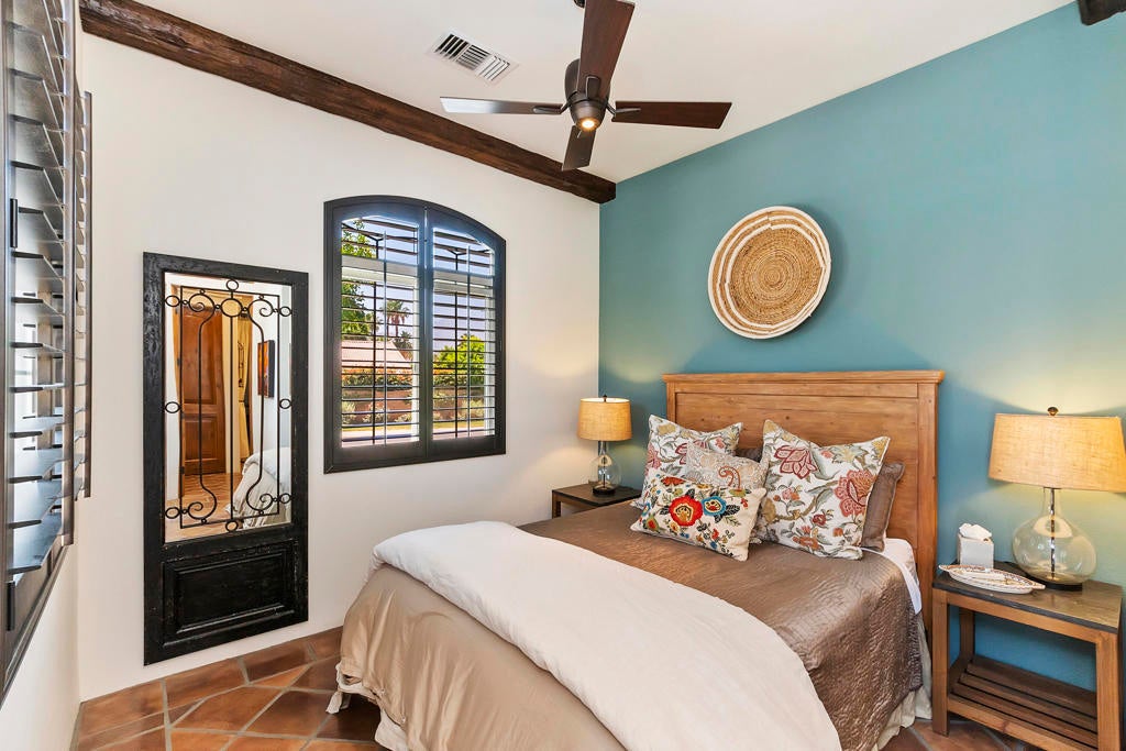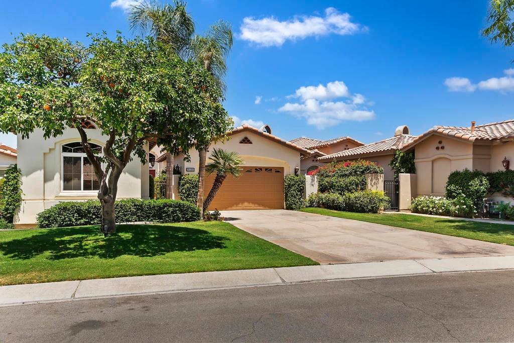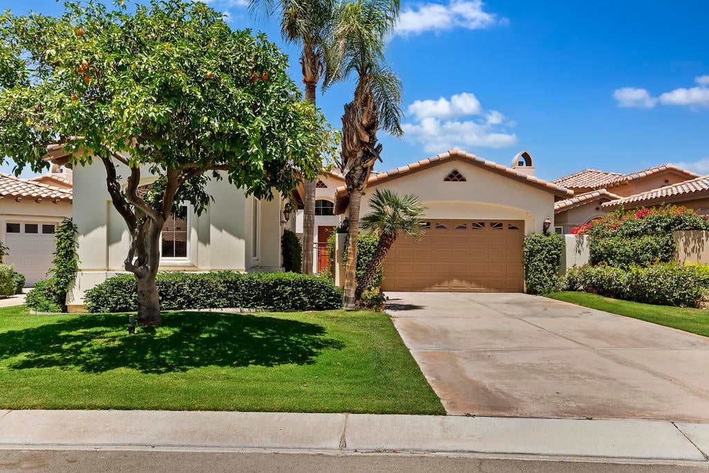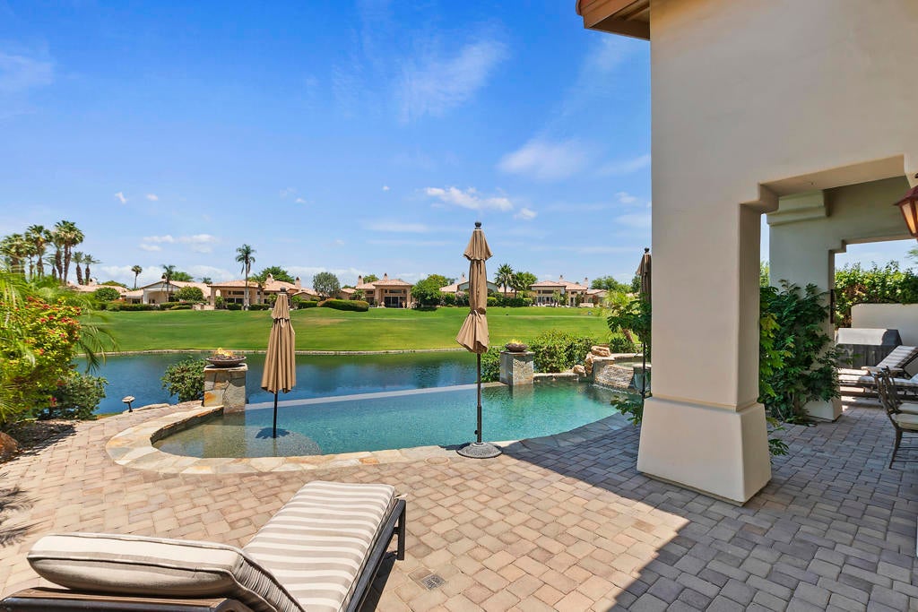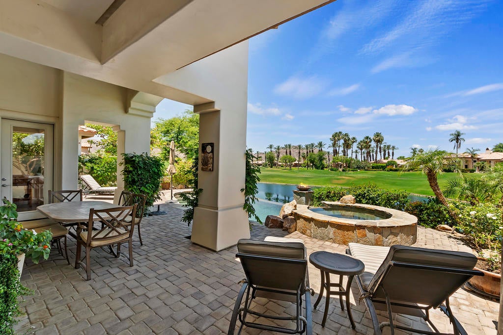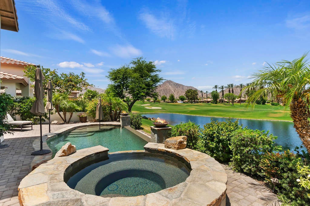 This charming 3 bdrm 3.5 bath property is located in beautiful Rancho La Quinta. Located on the 16th hole of the Jones course this Terrazza II floorplan awaits your arrival! As you enter the courtyard you are welcomed by a cozy outdoor fire pit situated next to the detached 2 room casita. Upon entering this 2648 sq ft home you elegantly enter a space of old world charm with high dramatic cielings adorned with rich beams and Saltillo pavers. Along with the high cielings and large windows that flood the space with natural light this home creates a warm and inviting atmosphere where memories are made! Indoor living extends to the outdoors with an extended patio, infinity pool overlooking the adjacent lake with plenty of space for outdoor dining. Enjoy limited golf privledges with a new golf cart! Now available for lease!! SPECIAL PRICING FOR LONG TERM!!!