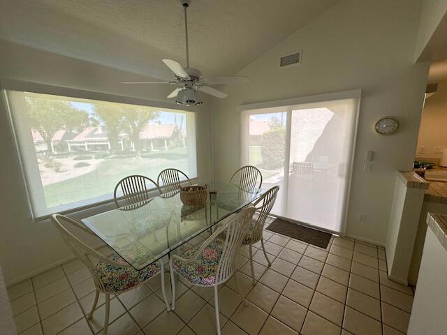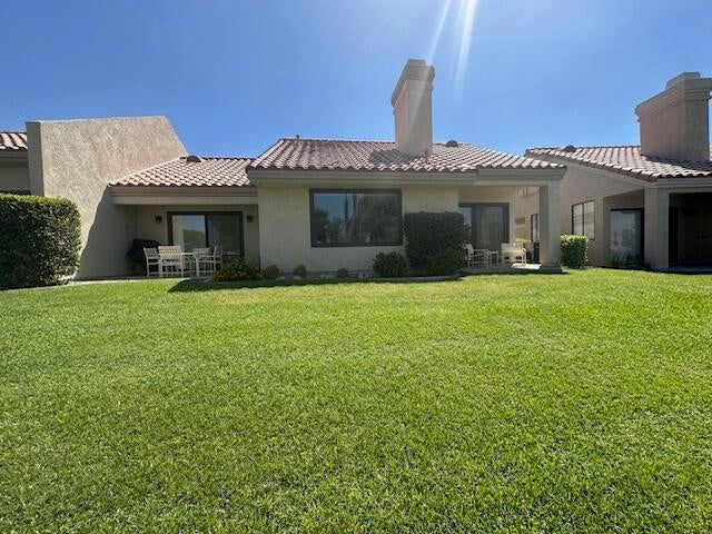 A great Champion Model, 2 bedroom, a den, a dining area, and 2 baths. 1360 square feet. Our largest model. With a private two car garage. Fabulous location elevated lot overlooking a pool and greenbelt area. Extremely well maintained. The living room offers high ceilings, a fireplace and access to one of the rear patios. A dining area with large picture window is off the light and bright fully equipped kitchen. All new windows and doors AC installed in 2021. Custom window treatments. The primary bedroom has a motorized roll down black out shade. The primary bathroom has a large soaking tub with a shower above. The guest bedroom has mirrored closet doors and the hallway bath has a shower stall. A stackable washer and dryer are in the hall. This unit is east facing for the glorious morning sun! Steps to the pool and spa. This unit is nicely furnished and is newly available for the 2026 season. Rented from January 1 through March 31st. Available in April Golf cart included. Located in the ever popular Palm Desert Resort Country Club, with clubhouse, bocce ball. 18 holes of golf and a very active pickleball and racquet center. 20 pools and spas.
