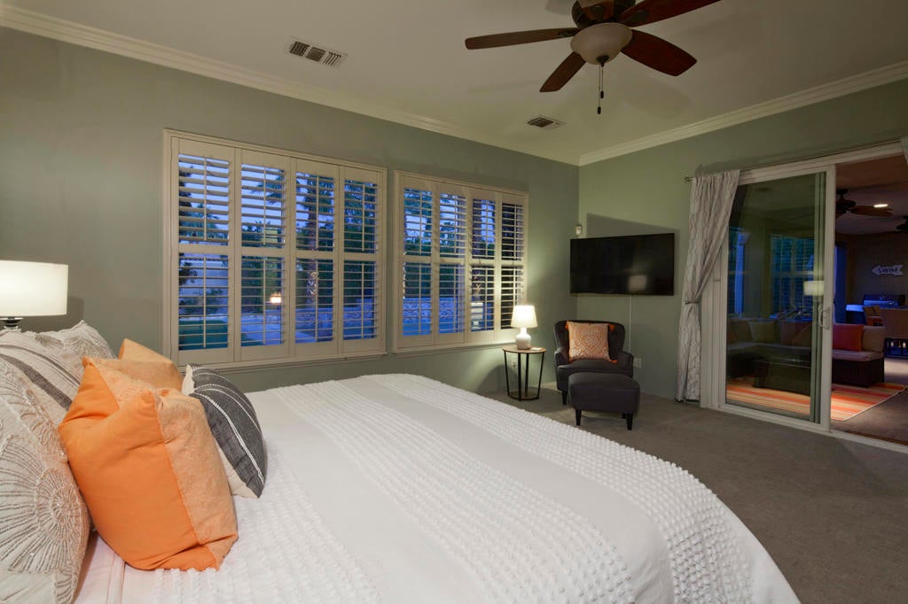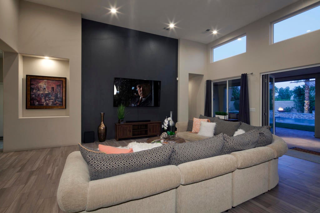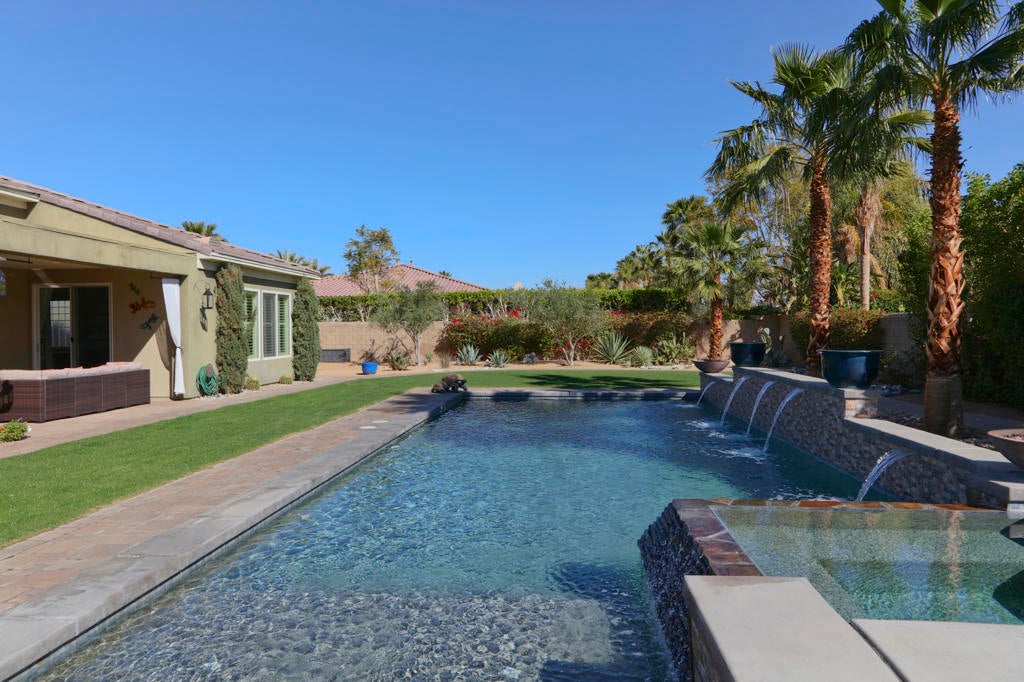 LEASED 1/1/25-3/31/25 Entertainers dream for your home away from home!! Remodeled modern design 4 bed, 4 bath 3400+ sq ft home w/ separate office/Bedroom. Situated on over a 1/2 acre corner lot!! Open concept great room welcomes you w/ 14' ceilings, modern ceramic tile floors, over sized windows including a panoramic folding patio door giving access to an amazing pool and back yard. Remodeled gourmet kitchen has oversized island, granite tops, high end SS appliances, custom lighting and plenty of cabinet space. The family room has built in entertainment center & corner fireplace w/stone wall accent. Huge master suite has oversized windows w/ amazing views of the back yard, access to back patio. Master bathroom has custom tile floors, freestanding soaking tub, his and hers floating vanities along with a stunning custom tile shower featuring two shower heads! The back yard has to be seen to believe! Rectangular Pebble Tec salt water pool that has built in fire bowls, spacious spa, separate fire pit area, plush landscape w/ custom landscape lighting, concrete walking path as well as seating area, paver patio area w/built in TV. This home has the floor plan and lot size to make it a very comfortable and special home. A great home for your home away from home! Call for a private showing!
