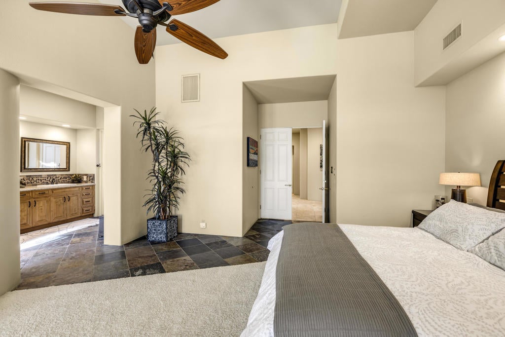 An expansive custom home in Desert Horizons Country Club ''Estates'' neighborhood. Offering three bedrooms in the main house plus a the detached casita, beautiful south facing golf course and mountain views, a large pool and spa with abundant patio spaces, this is and extraordinary rental property. Minimum rental period 3-months.