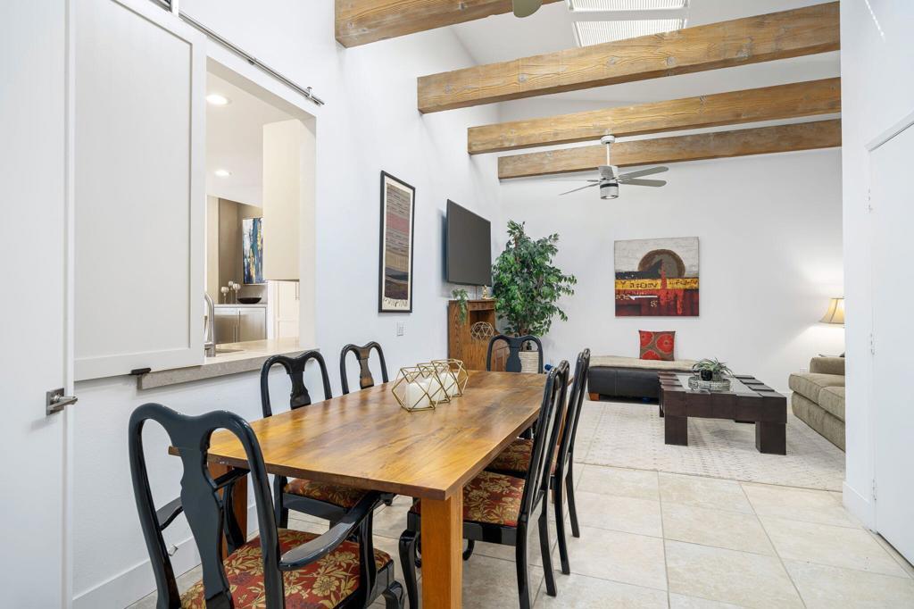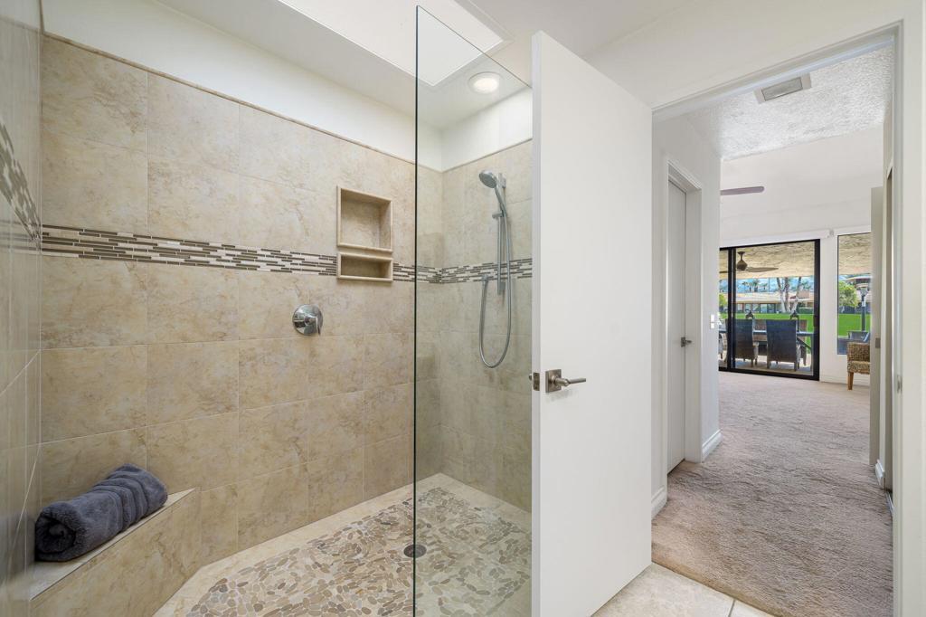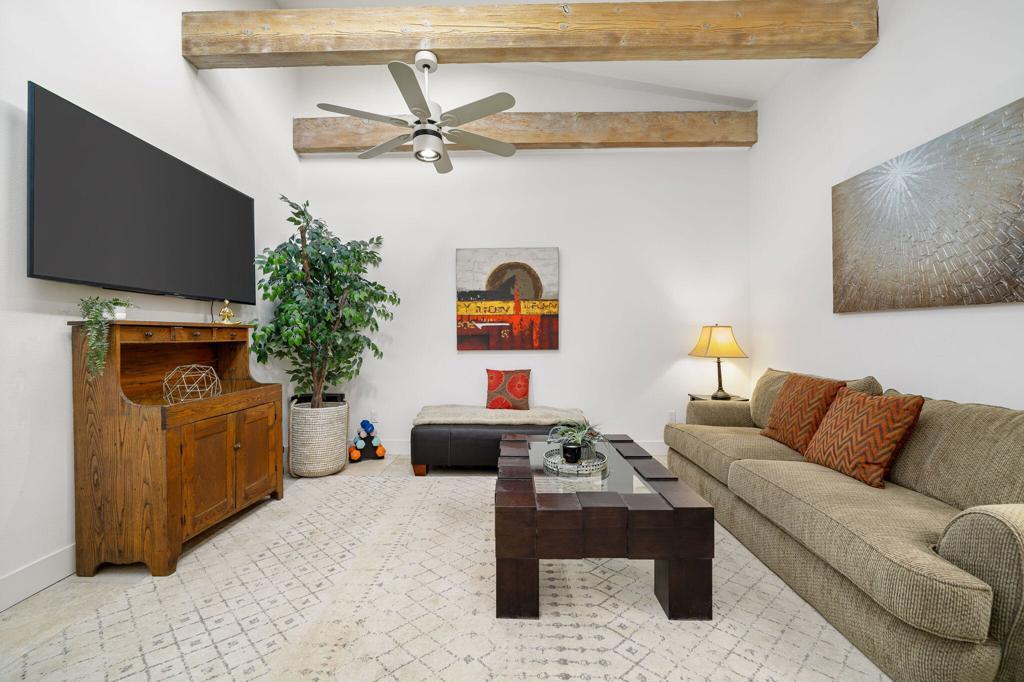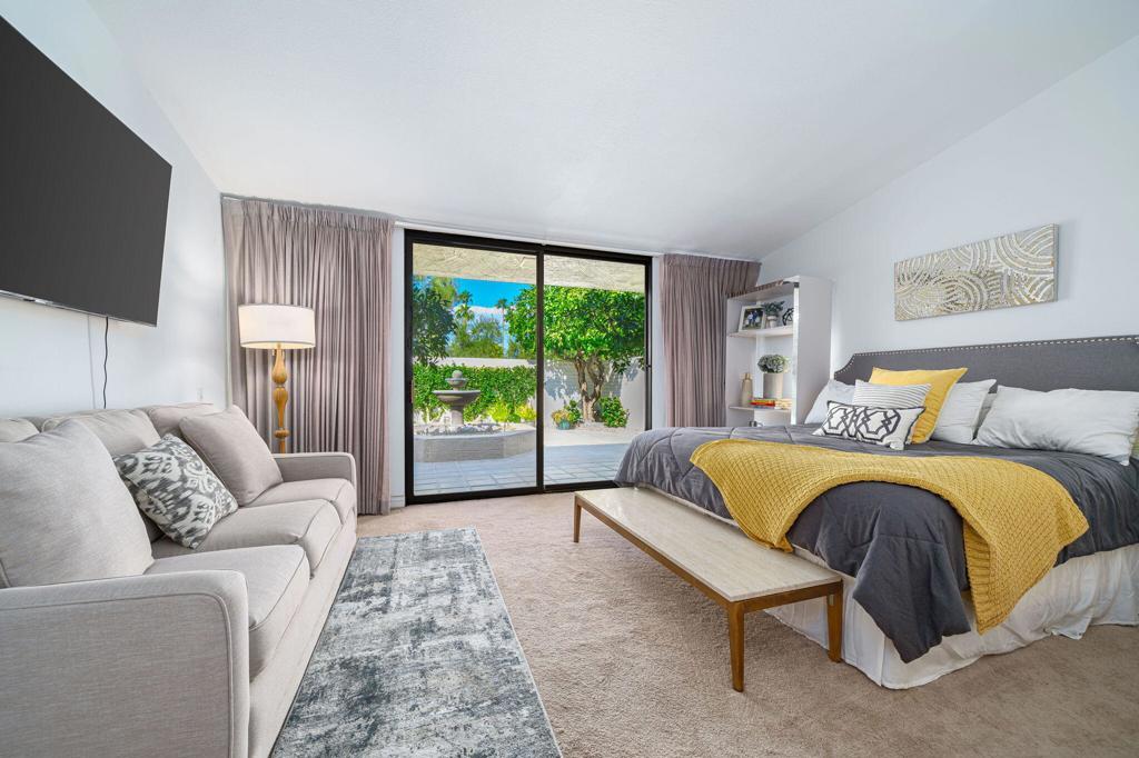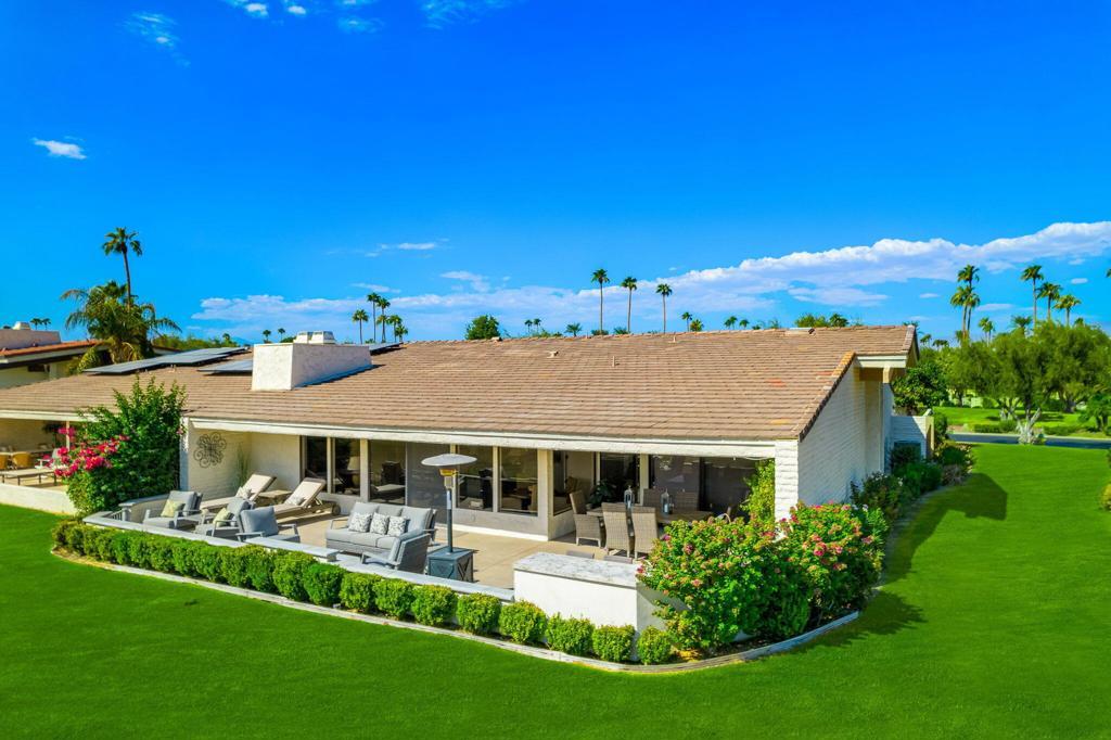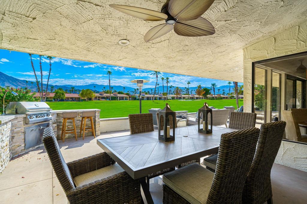 Available Jan. 4th 2026. Spectacular South Mountain & Fairway Views are yours from this Gorgeous 3 Bedroom- 3 Bath Furnished home. The private Courtyard with flowing Fountain welcomes you into this tastefully appointed home perfect for Entertaining with a spacious Open Living Concept. Architectural details include the Entry Foyer, pristine Tile floors, Living Room with Fireplace and TV, Wet Bar with Wine Frig. An upgraded Gourmet Kitchen with an over-sized Island with seating for 4, Quartz counter finishes, Stainless Steel Appliances, warm Cabinetry and Backsplash. Breakfast Nook for 4, Dining area for 6 and Den enhanced by wood beam ceilings, TV for relaxing. Luxurious Master Suite w/ a King Bed, TV and its own Patio access, large Shower and custom Walk-in Closet. Spacious 2nd & 3rd Guest Rooms offer updated en-suite baths & sliders out to their own patios, both offer Queen-size Beds. Take in the breathtaking sunsets while savoring the incredible views of Mt. Eisenhower from your outdoor patio, complete with a gas grill and dining table for six. The community pool is just steps away, offering the perfect setting for relaxation and fun.