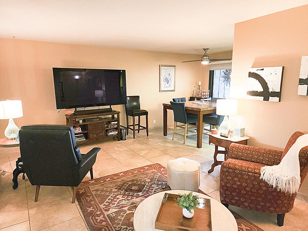 Vacation Rental. Just freshly updated! Minimum 30 day booking. Comfortable and stylish poolside condo overlooking the pool/spa in a quiet location with carport parking and close to the tennis courts. Near Tahquitz Creek golf in the Waverly Park area. Private laundry. Two bedrooms/Two baths. (One bedroom was a den, converted to a full bedroom). Upgraded kitchen & baths. Free WiFi and full size laundry. Bi monthly cleaning included in lease. Utilities included. Sleeps up to four people. King primary, queen guest bedrooms. Sorry, no pets or smoking. Rates: April to January: $97/night. Feb/March $132/night. $500 refundable security deposit. $195 cleaning fee. $188 Prop Fee. 50% up front, 50% due 90 days prior to arrival. Booked: January 2026 and March 6-12, 2026. All other dates are available.
