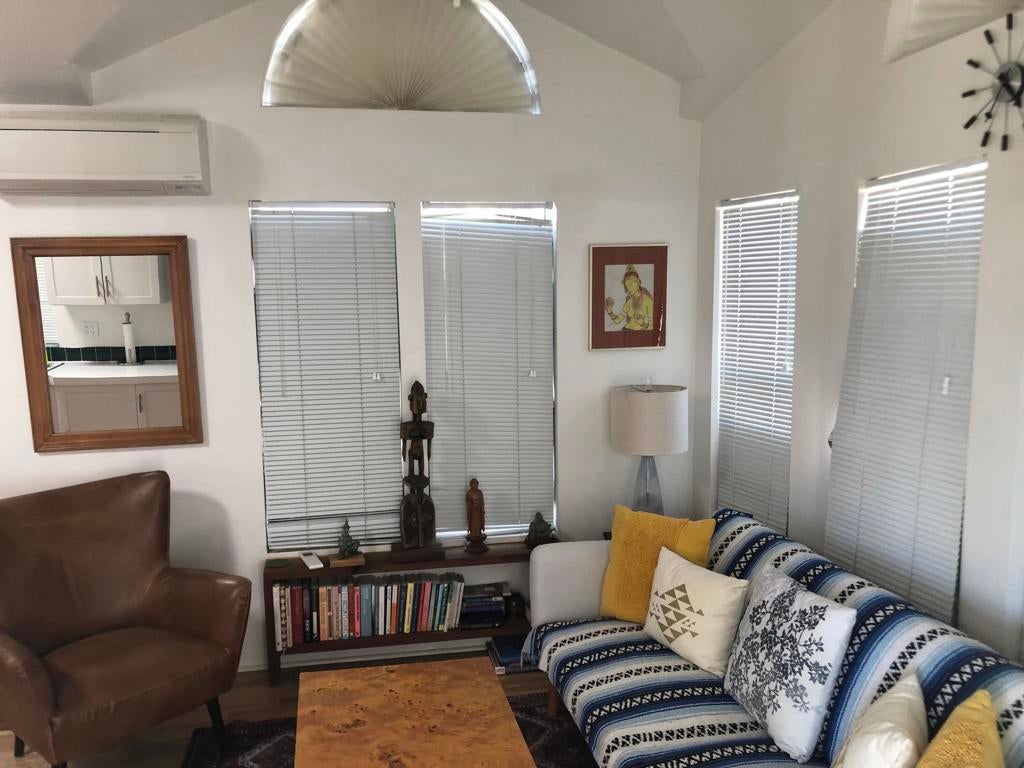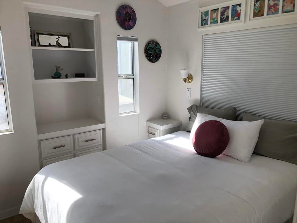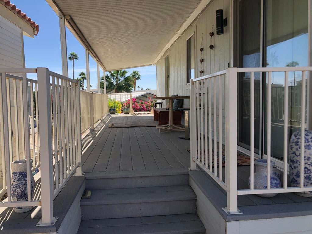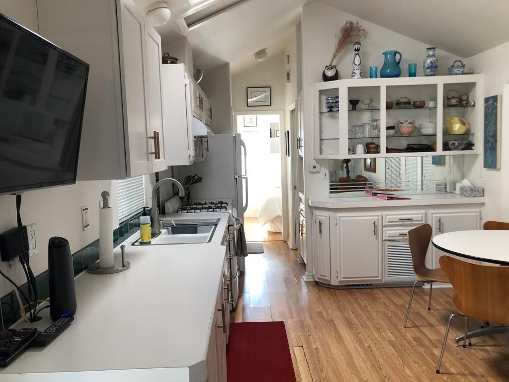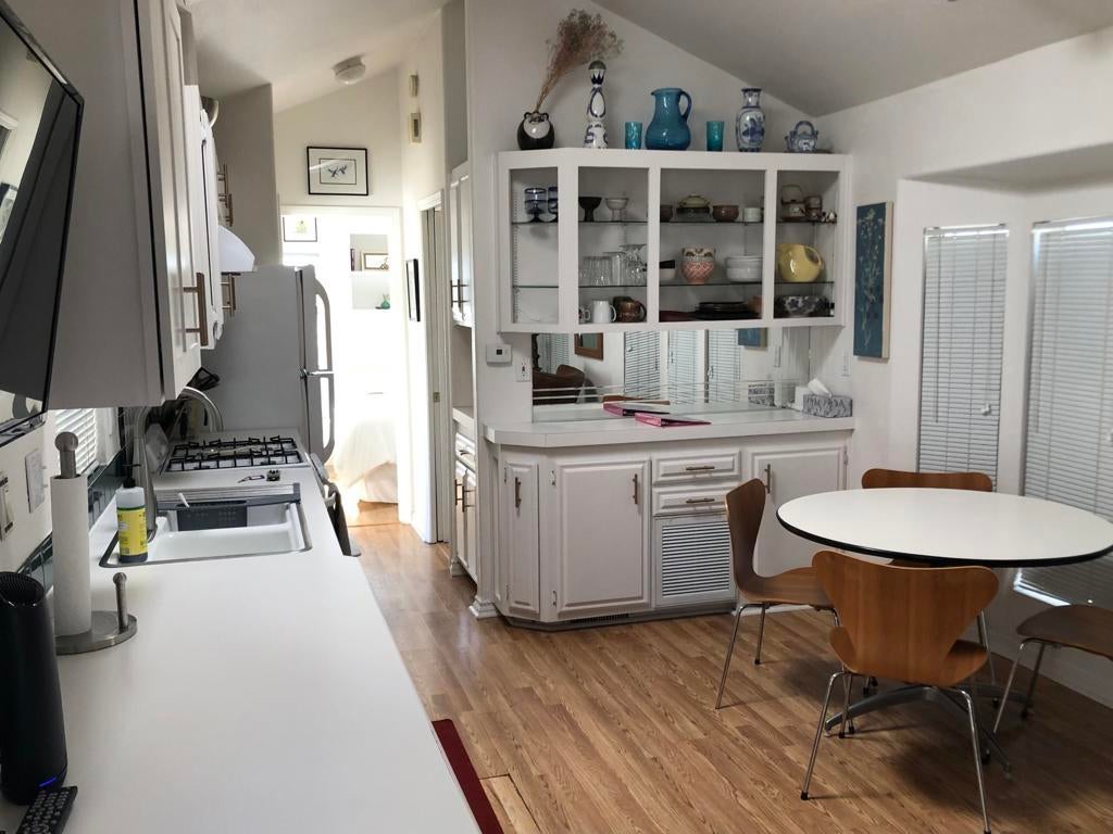 Feel INSPIRED in this charming park model with covered deck and lower patio area surrounded by colorful landscaping with gorgeous panoramic views.Cozy 1 bed/1 bath with open concept design is perfect for a primary residency or vacation home.Located on leased land in Sky Valley Resort, an active, ALL AGE park, featuring: 13 sparkling hot spring mineral pools, pickleball, tennis, walking trails, peak season weekly farmers market vendor, cafe, chef, gym, library, activities and classes and more!No HOAs or property tax. Low priced annual DMV registration.