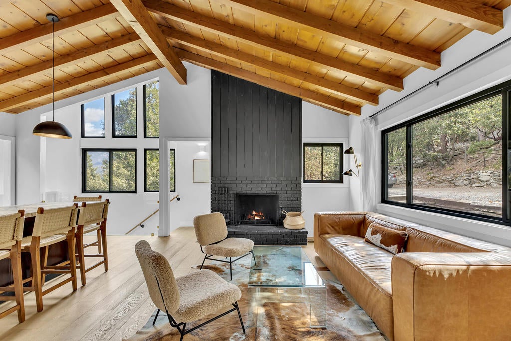 SPECTACULAR VIEWS AND TOTAL PRIVACY.! Enjoy amazing views and quiet solitude from this beautifully remodeled and upgraded home located on a quiet cul-de-sac street in the prestigious Double View Dr. area of Idyllwild. Dramatic interior spaces with beamed cathedral ceilings and walls of glass, highlight this 3 bedroom plus family room, 2.75 bath home. The central living area features great room with large lounge area and floor to ceiling painted brick fireplace, all new kitchen with appealing wood toned cabinetry, stunning porcelain counters, high end stainless appliances and central island with breakfast bar. A breathtaking all glass dining room has multiple picture windows framing the Mt. San Jacinto and Tahquitz Peak panorama. There are 2 bedrooms and 2 baths on the main level, including the primary suite with private bath and deck access. The lower level has a large family room/secondary lounge with refreshment bar, propane fireplace, 3rd. bedroom, 3rd. bath and laundry. There is wood flooring throughout, central heat and A/C, dual pane windows, multiple level decking and hot tub. Come experience this private view sanctuary, surrounded by nature, as only Idyllwild can offer.