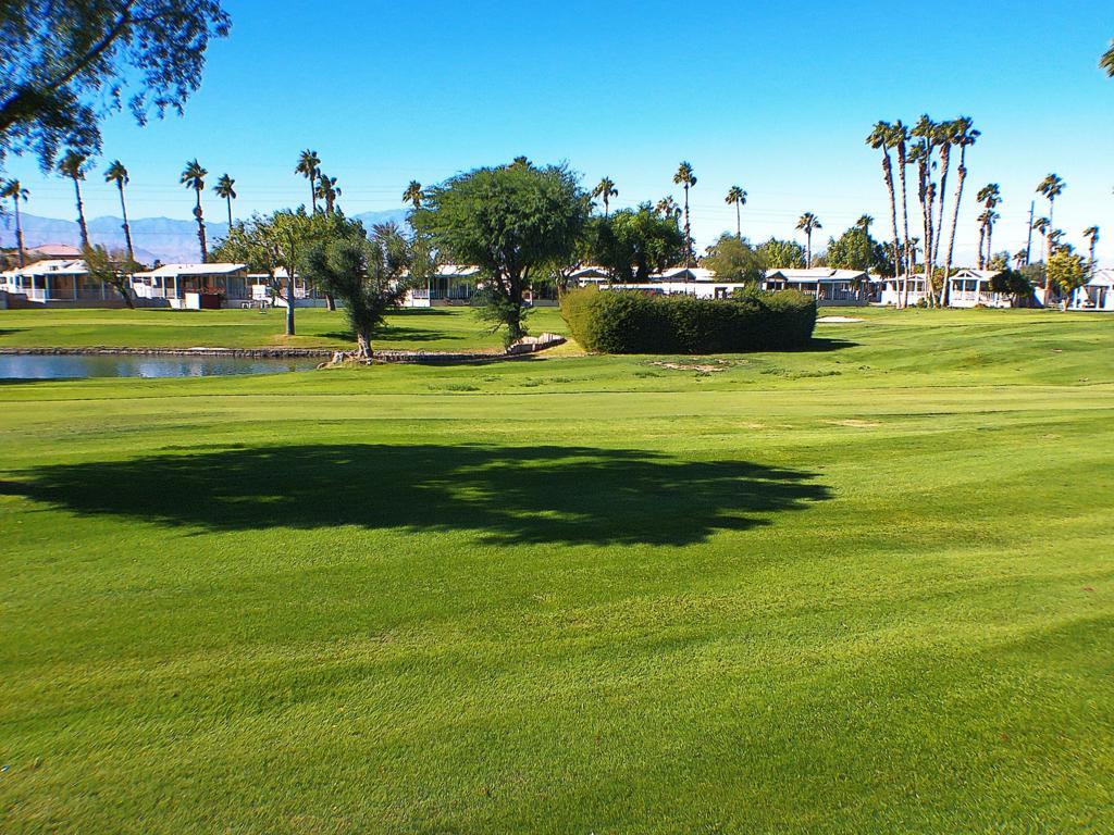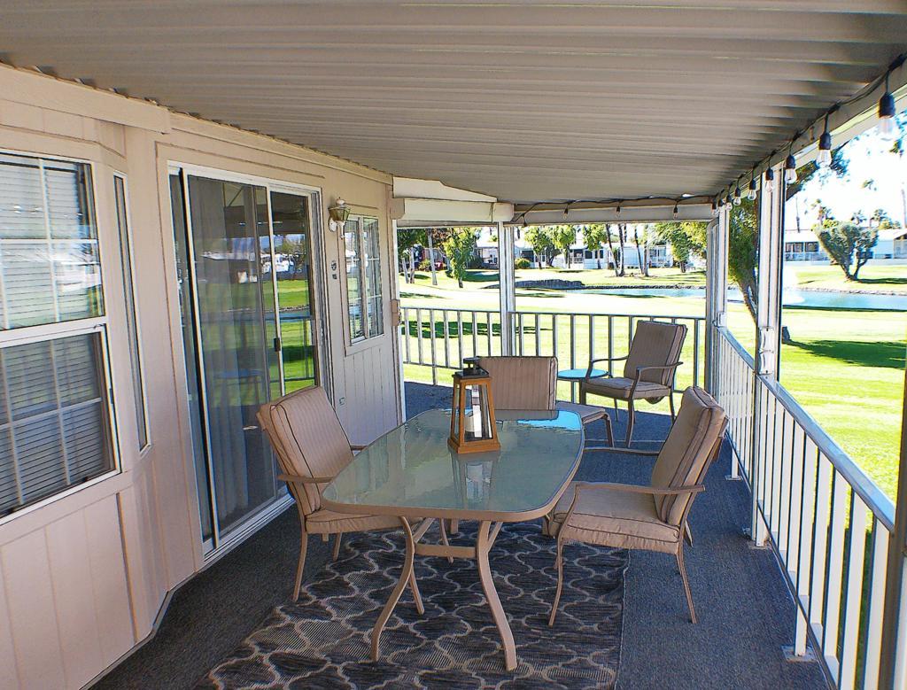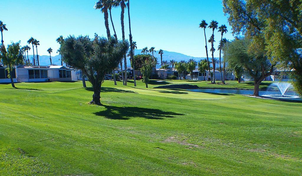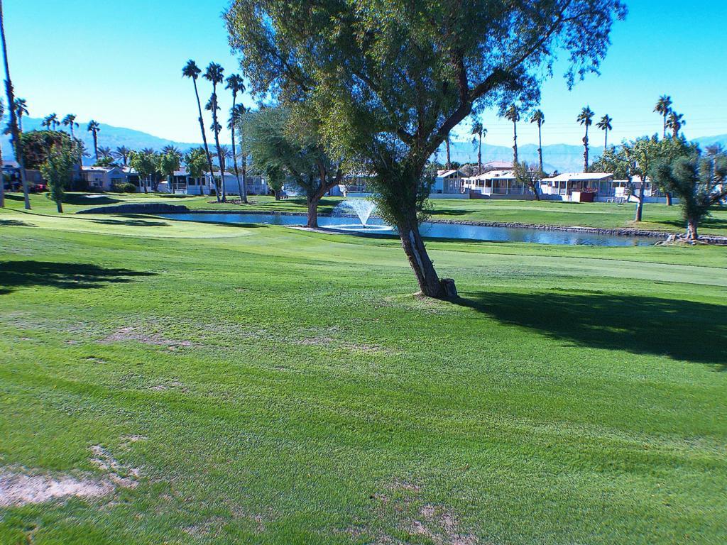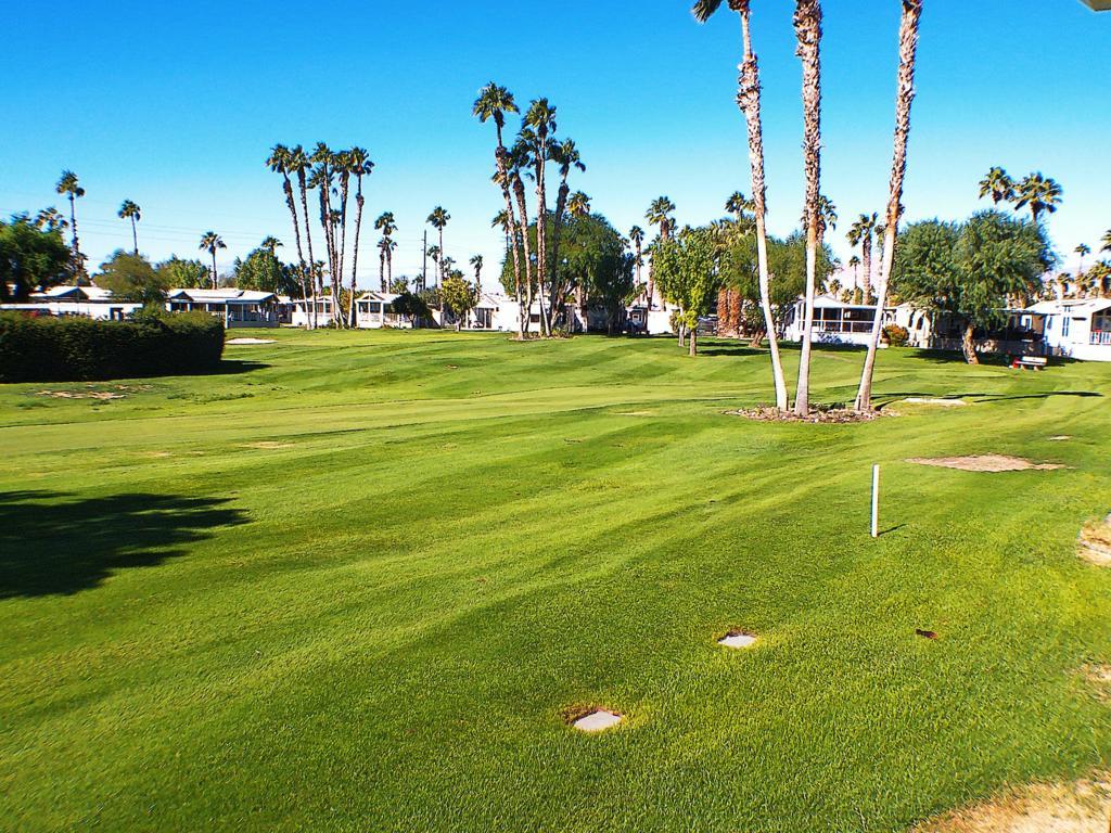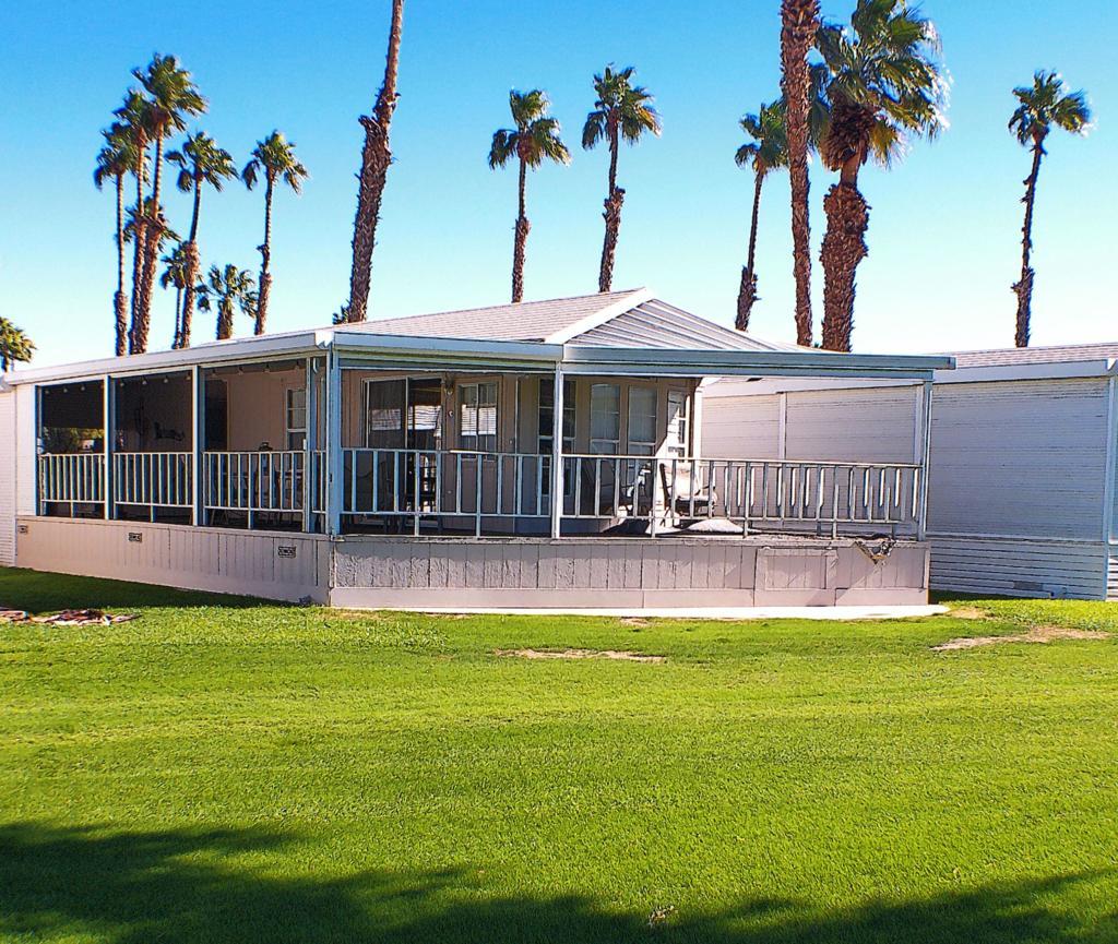This park model is located on the 2nd hole beside the green with wonderful views of a lake and the San Jacinta Mtns in the background. The deck offers roll down auto shutters, an 'L' shaped deck, with sunset views. New flooring was installed this summer, '25, on the deck. Being Sold Turnkey!Rancho Casa Blanca (RCB) features a beautifully landscaped 80-acre property with 801 individual Park Model homes/or RV sites, Two large clubhouses that function as social hubs & 4 satellite buildings with laundry facilities, mailboxes, heated pools & relaxing spas. As an owner you will enjoy FREE GOLF on your 18-hole par 3 golf course, a 9-hole putting course, 2 practice chipping/putting greens, 6 heated pools/spas, 2 tennis courts, 8 pickle ball courts, shuffleboard courts, horseshoe pitch, fitness center & over 60 Clubs & Classes. This park has a limit of 270 day occupancy (not consecutive) out of 365 calendar year.