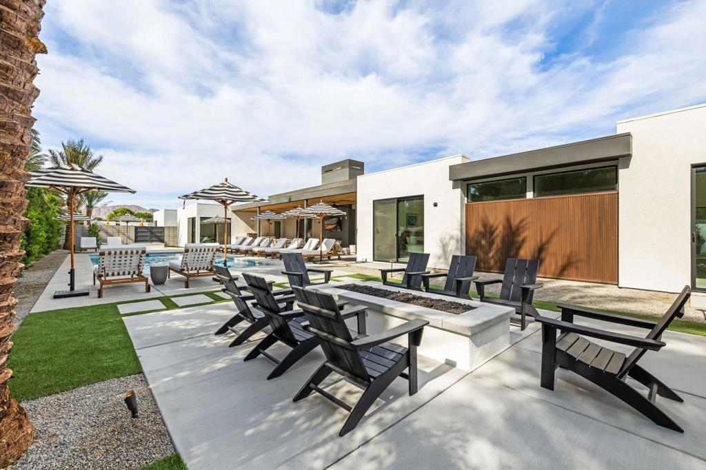 Located within the exclusive, gated Polo Villas community, this stunning 4,458-square-foot estate offers the pinnacle of desert living. A true masterpiece, the home features 6 bedrooms, 6.5 bathrooms, and a dedicated media room, seamlessly blending modern luxury with timeless Old Hollywood glamour. The open-concept design and high ceilings create an airy, spacious feel, while clerestory windows flood the great room with natural light, enhancing its serene atmosphere. Step outside to your private resort-style oasis, complete with a fully-equipped outdoor kitchen, sparkling pool and spa, putting green, and a cozy fire pit--perfect for year-round enjoyment. The outdoor living area is outfitted with ceiling fans, heaters, TV and Sonos speakers for comfort, regardless of the season. Inside, the gourmet kitchen, media room, and expansive bedrooms with large format tile ensuite bathrooms cater to both relaxation and entertaining needs. This home is designed for convenience and luxury, offering an EV charger, solar energy system, dual washer/dryer sets, and smart home features. Approved for short-term vacation rental in La Quinta, it presents a unique investment opportunity while providing an ideal personal retreat. Whether you're looking for a high-end vacation home or a profitable investment, this property delivers exceptional style, privacy, and desert elegance. It's truly the ultimate desert getaway.
