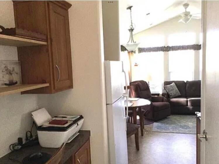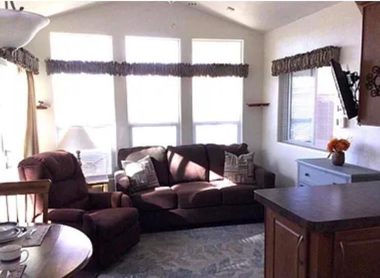 Well maintained 2015 Cavco gently used as a second home. Furnished and turn key! Composite decking on covered porch overlooking the gorgeous landscaping and foothills of Joshua Tree National Park. This unit is near the pickleball courts.Sky Valley Resort is an active, ALL AGED family park consisting of full time residents and secondary vacation homes. The park features:-13 hot spring mineral pools;-sauna;pickleball, tennis, basketball, horseshoes, shuffleboard and more!-cafe, chef and small business food vendors;-weekly farmers market;-concerts, activities and classes during peak season;-walking trails, gym and fitness center and more!Space rent is $820 per month on this unit.