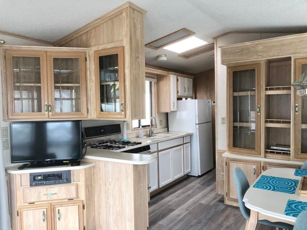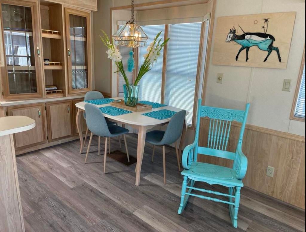 LARGE FENCED YARD!New upgraded plumbing and LVP wide plank flooring!Nice wrap around deck with desert views!Furnished and stocked, this turnkey home is perfect for full time or seasonal living.Sky Valley Resort is an ALL AGED family park popular with full time residents and vacation homes. The resort features:13 sparkling hot spring mineral pools;pickleball, tennis, shuffleboard, horseshoes, gym, fitness center, walking trails;cafe and chef;peak season activities, classes, community events and MORE!