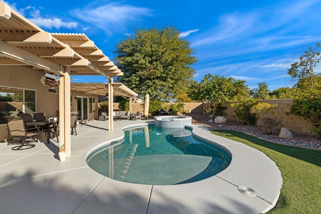 Jan-Feb for $6,500/mo, March & April for $10,000/mo. May - October for $4,500/mo, Nov-Dec for $5,500/mo, Welcome to Las Brisas I of Indio. This recently reimagined and renovated 4 bedroom 3 bath home comes fully furnished with new everything.New kitchen, appliances, bathroom, pool, paint and furniture all completed in 2024. Make this your home away from home or home between homes for spring and summer.The house features an open floor plan with separate dining and living space, large kitchen island, and a dedicated work area with two desks. Outside the large covered patio has ample room to relax under the shade, dine al fresco, or soak up the sun in the sparkling new pebble tech pool with tanning shelf. Guests will enjoy 2 king beds, 2 queen beds, indoor laundry, two car garage, and RV parking available if needed.Call today to schedule a private viewing.