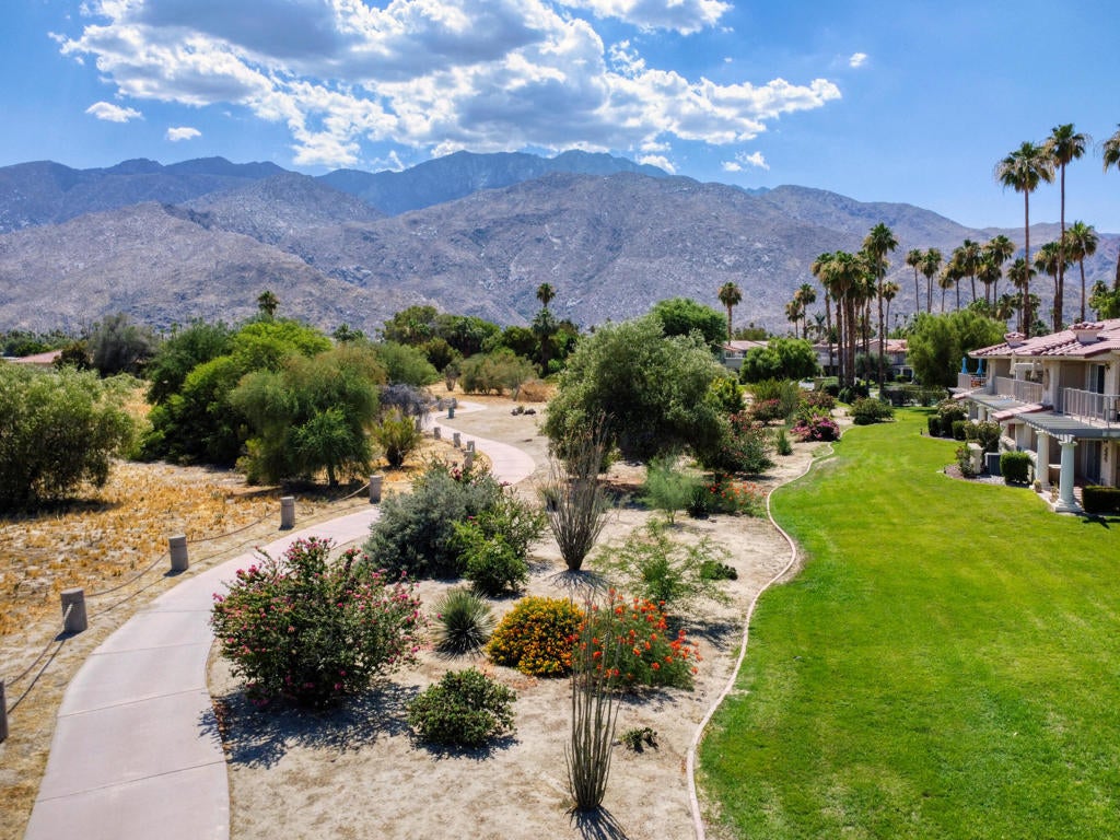 Ideal and chic upper-level condo, perfectly situated with AMAZING MOUNTAIN VIEWS. Close proximity to all amenities. Incredible turn key opportunity for anyone looking for a vacation property, investment property, or full time residence in Palm Springs. The tastefully updated kitchen is ready for your gatherings to unfold. This elegant condo unit offers the ultimate blend of comfort, style, and convenience. Upon entering you will fall in love with this charming property. 2 Bedroom 2 bathroom unit located in Mesquite Country Club. A spacious open floor plan with a large primary bedroom. The sliding doors have been updated and provide access to the incredible balcony areas. Come live out your Palm Springs dreams in this tranquil and peaceful space. Offered turnkey furnished and ready for you to make your own.