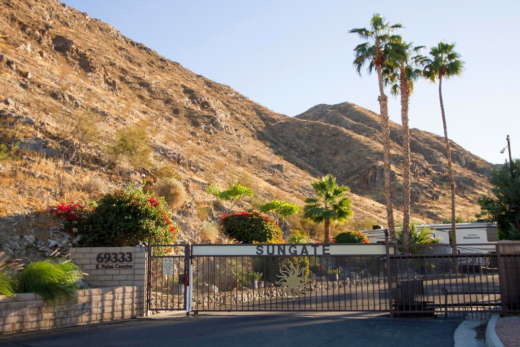 This lot is situated at the top of the Sungate community at the base of the desert mountains, offering great views. Conveniently located across from the Clubhouse, this vibrant community boasts a wealth of amenities, featuring two heated pools, three spas, along with a game room and weekly activities. Designed for a quiet, enjoyable lifestyle, this 55+ gated community is perfect for those seeking relaxation and recreation. The lot is ideally positioned next to the Clubhouse for added convenience. For those who prefer more luxurious options, the lot is located near Palm Springs and The River outdoor mall in Rancho Mirage, and is walking distance to a variety of restaurants, including Agua Caliente Casino.