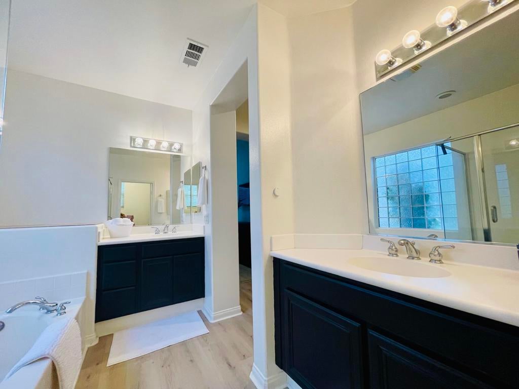 Vacation Rental available for the Summer! 2 Bedrooms and 3 Bathrooms, Turn-key Single Family home with an Attached 2 Car Garage. This property has been recently updated to include all new furnishings & everything you need for the perfect Desert getaway! 30 Day Minimum, Discounted Summer Rates for 2025. Nov 2025-March 2026 Season Booked. **Month of April 2026 Only $5,500** , All Utilities Included except Electricity (A $200 Per Mo Electricity Credit/Allowance, Tenant to pay Overage). A well designed floorplan with the Primary En Suite on one side of the house featuring a King Bed, Smart TV and large bathroom with Double Sinks and a Walk-in Closet. On the other side of the home is a Jr. En Suite with (2) Queen Beds, Smart TV, and Walk-in Closet. Separate Powder Bath for guests. Enjoy the open Kitchen design which is stocked with the essentials, granite countertops, bar stool seating, pantry & stainless steel appliances. Cozy gas Fireplace in the Living room, Dining table, Workstation, Plenty of Storage, Ceiling Fans, 3 Smart TV's with Streaming and WiFi. The Backyard features a covered patio & greenbelt view with a BBQ for grilling. Easy access from the house to a nearby Pool (3 Total), Lifestyle Center Amenities included with Pickle ball Courts, Tennis Courts & Gym, (3) 9 Hole Public Golf course. Situated in the guard gated community of Indian Palms Country Club in Indio, CA.