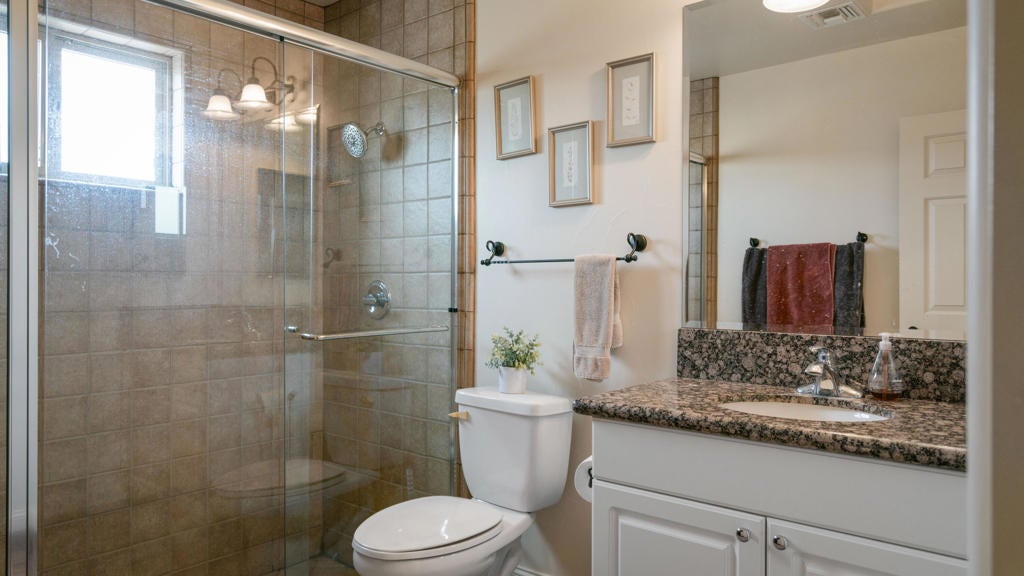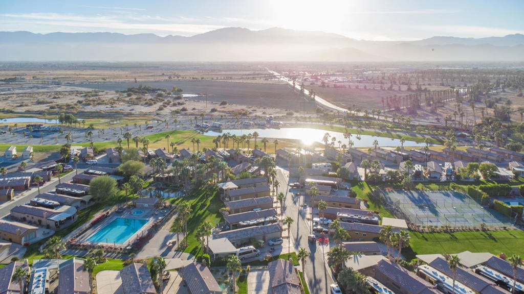 This property features an on-site built garage with a spacious laundry area and a full bathroom. The garage is incredibly versatile -use it as an extra bedroom, office, game room, den, or a comfortable guest space. Take full advantage of the huge RV parking area, designed specifically for your Class A RV, with all the necessary hookups included. Enjoy breathtaking panoramic mountain views in the serene and beautifully maintained Vineyards Luxury Motorcoach Resort. This all-ages community offers a welcoming and relaxing lifestyle. With its functional layout and stunning setting, this property is perfect for those seeking flexibility, comfort, and outdoor living!