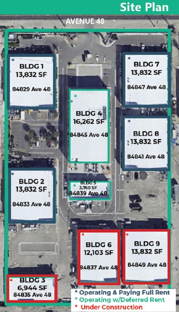 ■ MUST SELL Submit All Offers■ High-Performing NNN Multi-Tenant Leased Investment■ Over 100,000 Square Feet Of State-Of-The-Art Facilities, That Meet The Needs of The Cannabis Industry■ Nine Freestanding Industrial Buildings 90% Complete■ Fully Secured Cannabis Campus■ Lease Rates $2.50 to $3.00/SF/Mo NNN■ Tenants Are Experienced Cannabis Operators Under Long-Term Leases■ Annual NOI - Over $3,400,000 At Full Build-Out■ 2027 Projected CAP Rate - 9.32%