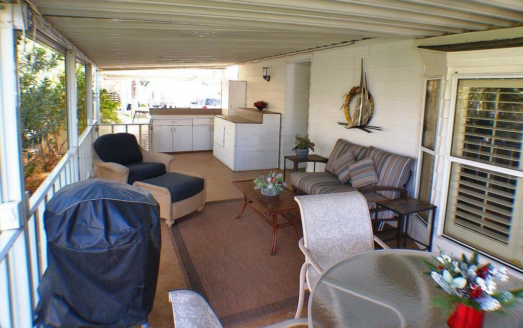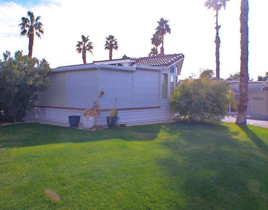 Outstanding Silvercrest Park Model located on a corner lot with a view of the Putting Course and Golf Course in the background. It offers covered parking with Auto Roll Down Shutters on the Deck. A W/D is located on the deck. The tile flooring is through-out the home and Plantation Shutters in living area. The upscale cabinetry in the kitchen and bathroom. The bathroom has been upgraded and offers tile finishing. A large bedroom with lots of storage area. Great Storage Shed. This home offers wonderful Views.Rancho Casa Blanca (RCB) features a beautifully landscaped 80-acre property with 801 individual Park Model homes/or RV sites, Two large clubhouses that function as social hubs & 4 satellite buildings with laundry facilities, mailboxes, heated pools & relaxing spas. As an owner you will enjoy FREE GOLF on your 18-hole par 3 golf course, a 9-hole putting course, 2 practice chipping/putting greens, 6 heated pools/spas, 2 tennis courts, 8 pickle ball courts, shuffleboard courts, horseshoe pitch, fitness center & over 60 Clubs & Classes. This park has a limit of 270 day occupancy (not consecutive) out of 365 calendar year.