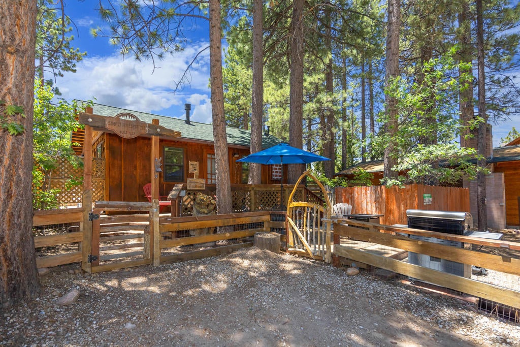 Motivated seller! Your search is over. This charming vintage cabin is ''Simply Irresistible''. Originally built in 1932, tastefully updated with modern amenities, delightful rustic touches and artistic details throughout. Beautiful slate floors, T&G walls, ceilings, and reclaimed wood features. Thoughtful use of the interior space makes for a cozy and comfy living room with an efficient gas-log stove and dining area, and has an adjacent office/study nook. Adorable kitchen has pendant lighting, breakfast bar, and is open to the living room. Remodeled bathroom with impressive slate shower and custom sliding barn door and vanity. Spacious bedroom opens to private patio. Enjoy outdoor mountain living out on multi-tiered deck and patio space surrounding the cabin. Gaze at the stars while soaking in the spa. Smart home features include: wi-fi thermostat w/battery backup, electronic front door lock, automatic lights/camera, plus EV charger. Even has laundry! Situated on a well-treed corner lot in a prime central Big Bear Lake location with easy all-season access and so close to the Village, lake, and forest trails. Has been a highly successful vacation rental. Go take a look ~ you'll fall in love.