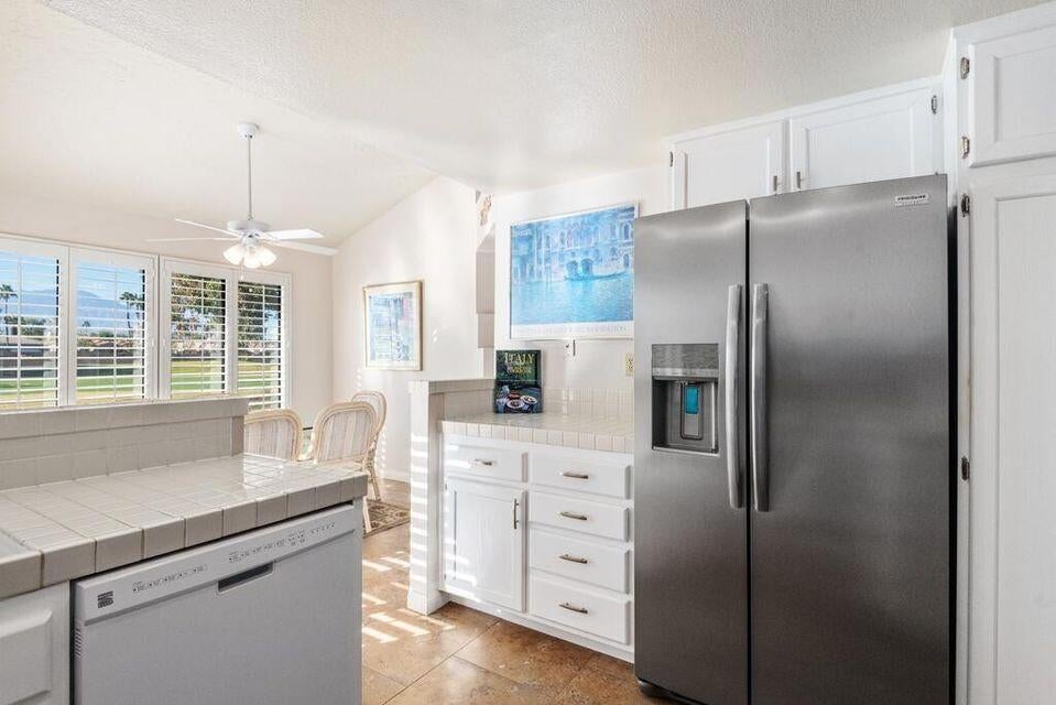 Escape to the Coachella Valley with this furnished 2-bedroom, 2-bathroom condo, situated on the golf course with stunning mountain views. This turnkey rental offers one of the largest floor plans in the community and comfortably accommodates up to six guests with a convenient pullout bed. The newly renovated primary bathroom adds a touch of modern luxury, while the attached 2-car garage and stackable washer/dryer provide the ultimate convenience. Located just minutes from restaurants, Indian Wells Tennis Garden, and festivals, this is the perfect home base for living and loving the desert lifestyle. Don't miss out on this incredible rental opportunity! This is a seasonal rental currently rented Dec 25- April 26