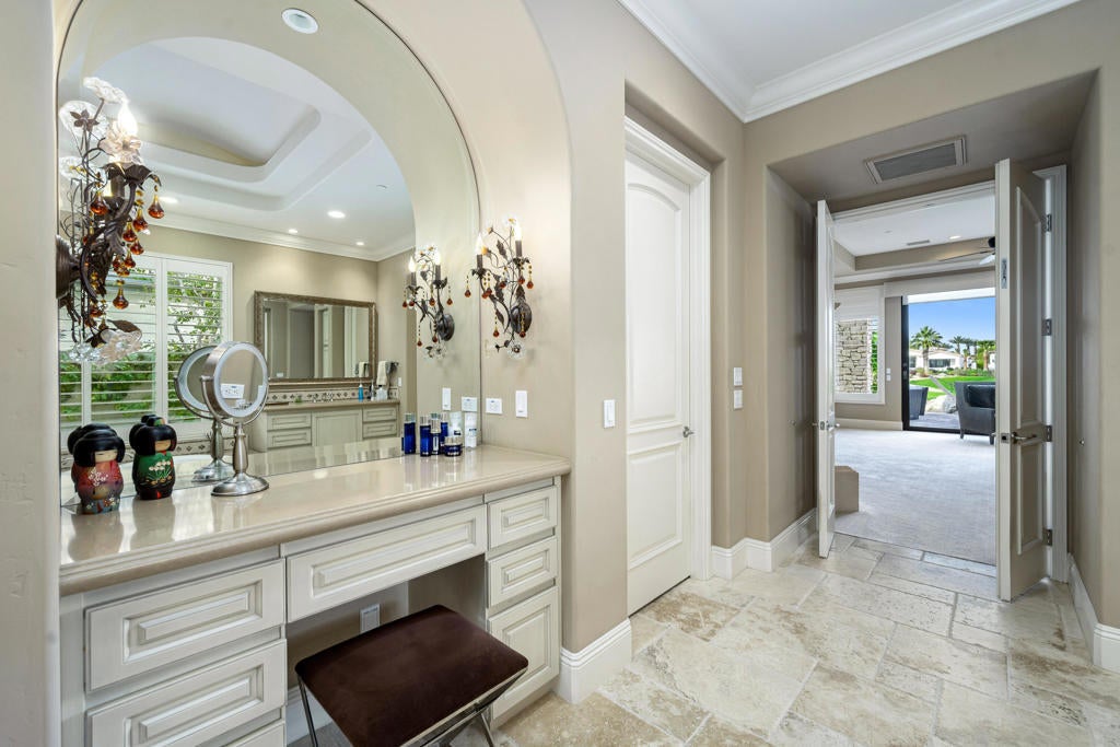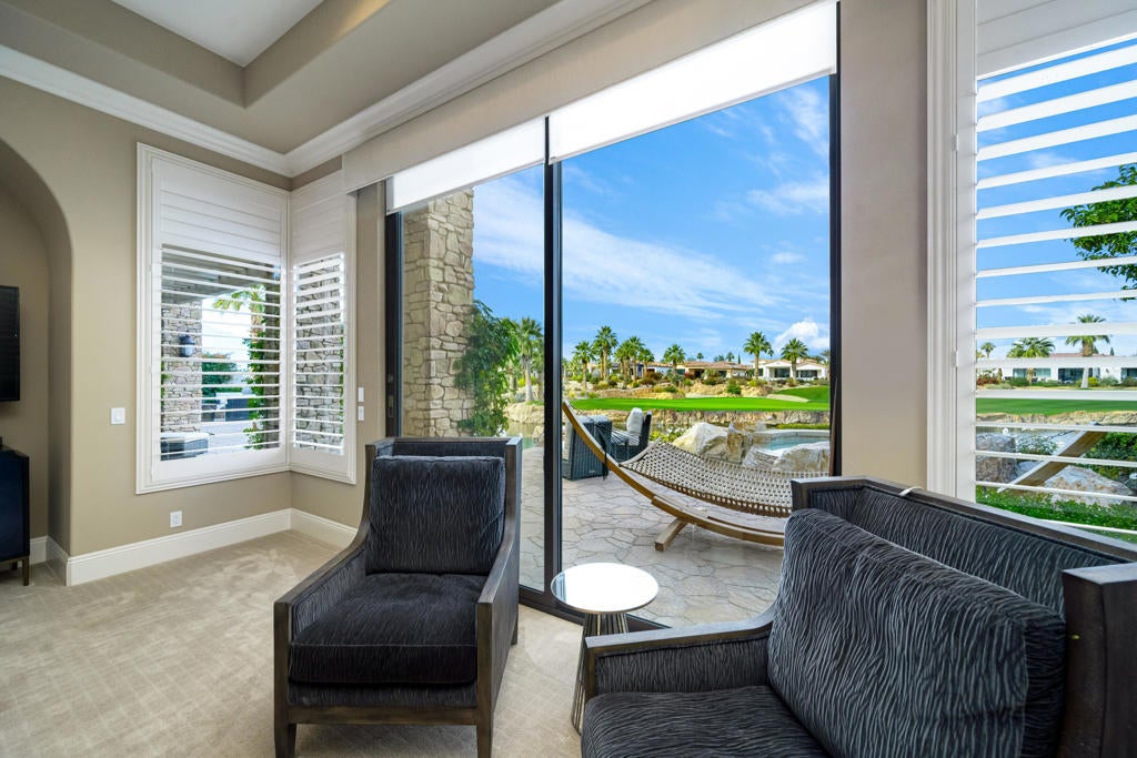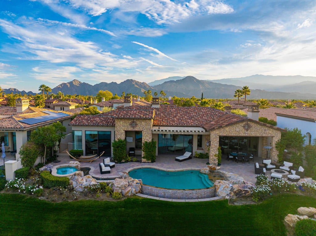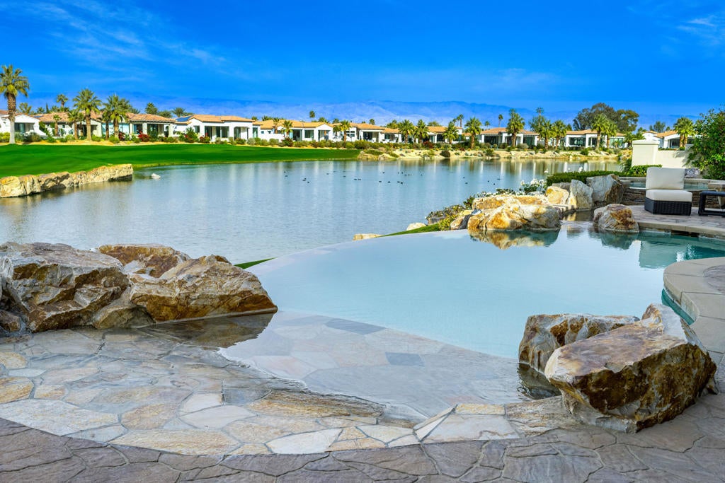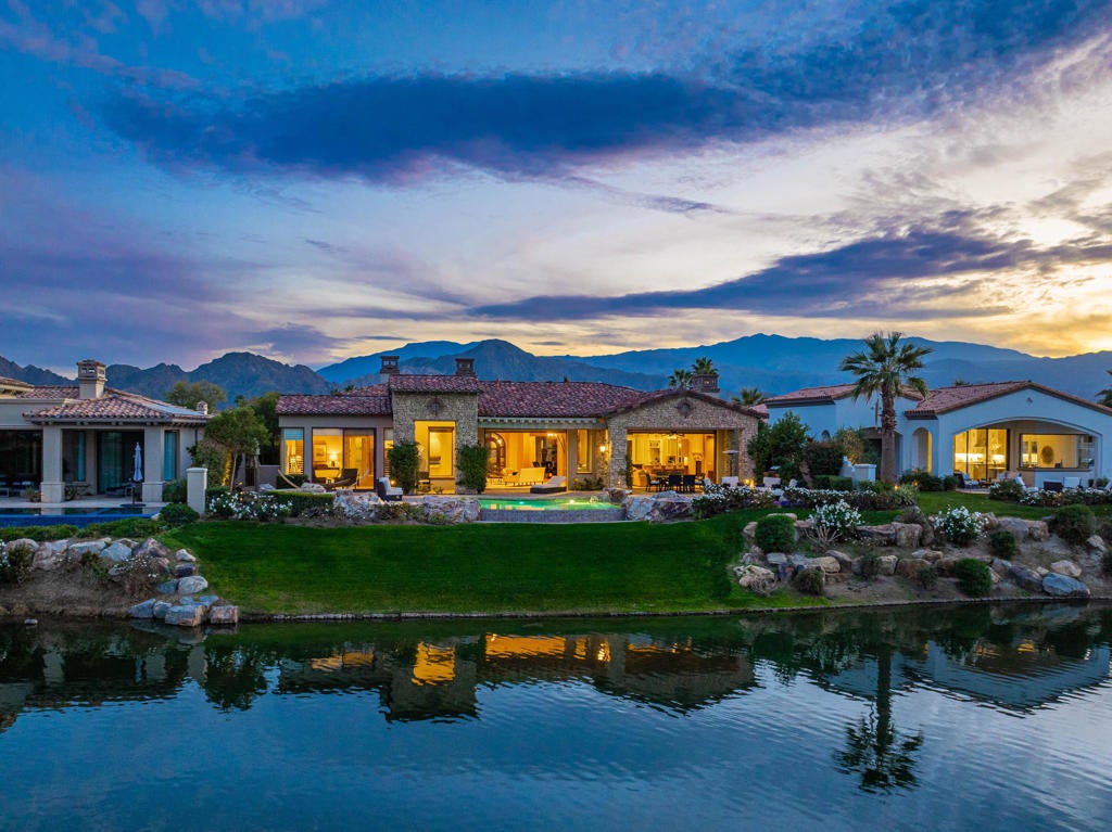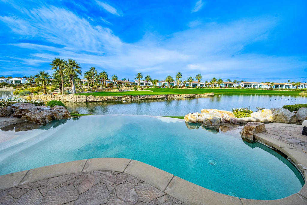 STUNNING RESIDENCE WITH UNMATCHED VIEWS! Discover your private oasis nestled in the heart of Indian Wells within the prestigious Toscana Country Club. This prime 4,930 SF home is perfectly positioned on an expansive homesite offering sweeping views of lakes, mountains, golf course and unforgettable desert sunsets. Home features 4 spacious en-suite Bedrooms which includes a private Casita with separate sitting room as well as a separate powder room. Perfect for the entertainer, the home's gourmet Kitchen features a generous center island, large pantry, top-tier appliances for any culinary endeavor, breakfast bar and nook with direct access to courtyard lounging area by a fireplace. Also included is an exquisite formal Dining Room with walk-in temperature controlled Wine Room that can be accessed from both Dining Room and Kitchen. Enjoy seamless indoor and outdoor living with multi-slide 10' pocket doors. Exceptional outdoor haven includes BBQ center, firepit with seating area, raised custom spa, stone waterway and infinity pool which appears to flow into the lake. Simply serene. Offered furnished per inventory.