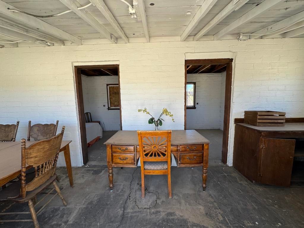 This historical property was once owned by legendary gold miner and town founder Philip Sullivan, this unique 5-dwelling ranch sits on 2 scenic acres, directly across from Joshua Tree National Park. Brimming with vintage charm and incredible views, this historic gem offers endless possibilities.The main permitted duplex is partially furnished and features two updated units--each with modernized plumbing, electric, HVAC, septic, kitchen, bath, and private patios--connected by a shared workshop/laundry room.Three additional historic cottages:The Adobe Bar & Entertainment Room - A spacious stone studio with vintage windows, original redwood beams, a rustic bar, and dual his-and-hers baths with solar-heated showers.The Writer's Den - A cozy 2-room retreat with a dining space, vintage-style windows, insulated walls, and original redwood cabinetry.1-Bedroom Cottage - Features a functional kitchen, working plumbing, stone masonry, vintage windows, and a charming covered front porch.Rounding out the property is a vintage adobe garage-workshop with rustic double doors, functional windows, and a large adobe-cement patio.Zoned Service Commercial (CS)/Residential N/C, this rare find allows for multiple uses--bar, restaurant, campground, hotel, event space, or a private retreat. Just 1 mile from downtown 29 Palms and 3 miles from the Joshua Tree National Park entrance, this is a one-of-a-kind opportunity.Being sold As-Is. Bring all offers!