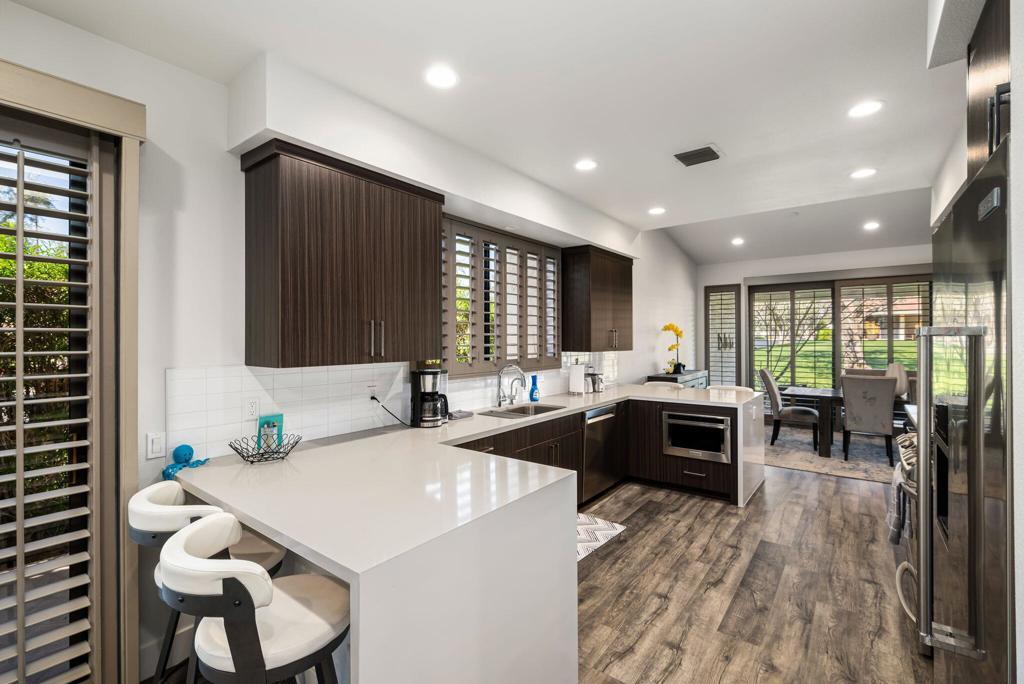 This gorgeous remodeled 3 bedroom/3 bath home sits on a quiet interior location, inside the gates of the prestigious Desert Horizons Country Club. The home has a spacious living and dining room with over 2800 sq ft of living space. The living room's electric fireplace sets the tranquil mood around two sofas and sitting chairs. The updated kitchen is sure to please with stainless steel appliances, gas range, craftsman quality cabinetry, upgraded countertops and an eating area for 4. The dining area seats 6 and has westerly views overlooking the back patio and serene greenbelt. A luxurious primary bedroom offers a large king bed, TV, and a large walk-in closet. The ensuite bathroom has upgraded cabinets, counter tops, and a large 2-person walk-in shower with a built-in bench. Guests are perfectly accommodated with private bedrooms, TV's and their own patios. The 2nd bedroom offers a queen/double bed, walk-in closet and ensuite bath. The 3rd guest room and ensuite have a queen/double bed and a desk. Amenities: Nice linens, towels, dishes, utensils, ceiling fans and wood shutters can be found throughout the home. Relax out on the back patio enjoying outdoor scenery of the green belt area of swaying palms, mature fruit trees and the community pool and spa just steps away. Desert Horizons Country Club's 40,000 sq ft newly renovated clubhouse is a central feature of the community, offering dining options, social areas, and event spaces. Optional Social Membership for tenants to enjoy gourmet meals at the club's restaurant and participate in social events. The 8,000 sq ft state-of-the-art fitness & wellness center encompasses incredible views complete with equipment for cardio and strength training, as well as group exercise classes. The NEW Sports Pavilion includes 2 tennis and 11 pickleball courts encouraging recreational and competitive play. You are close to the El Paseo Shops, Championship Golf and fabulous restaurants and dining.